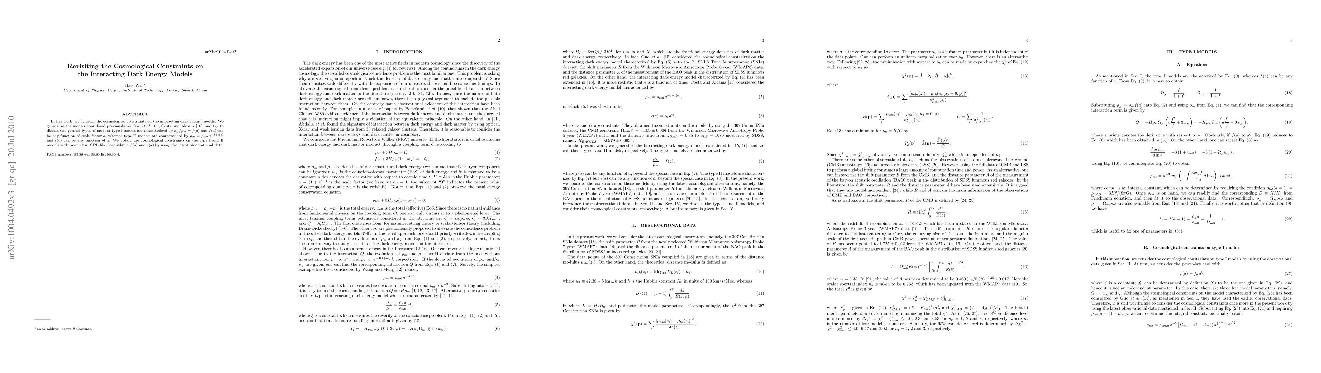 This paper revisits the cosmological constraints on interacting dark energy models, generalizing previous studies by examining two types: type I with $\rho_{_X}/\rho_m=f(a)$ and type II with $\rho_m=\rho_{m0}\,a^{-3+\epsilon(a)}$. It uses the latest observational data to derive constraints for various forms of $f(a)$ and $\epsilon(a)$.