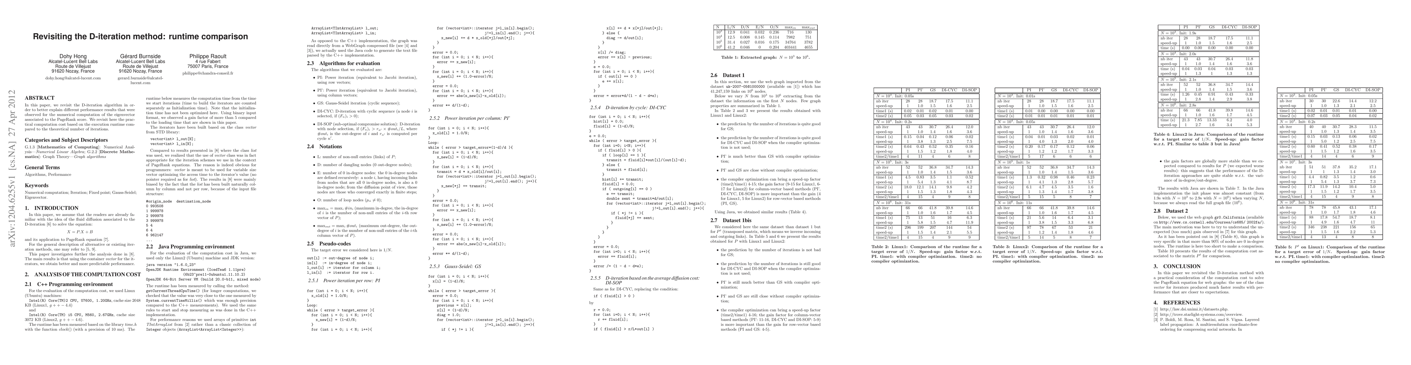In this paper, we revisit the D-iteration algorithm in order to better explain different performance results that were observed for the numerical computation of the eigenvector associated to the PageRank score. We revisit here the practical computation cost based on the execution runtime compared to the theoretical number of iterations.