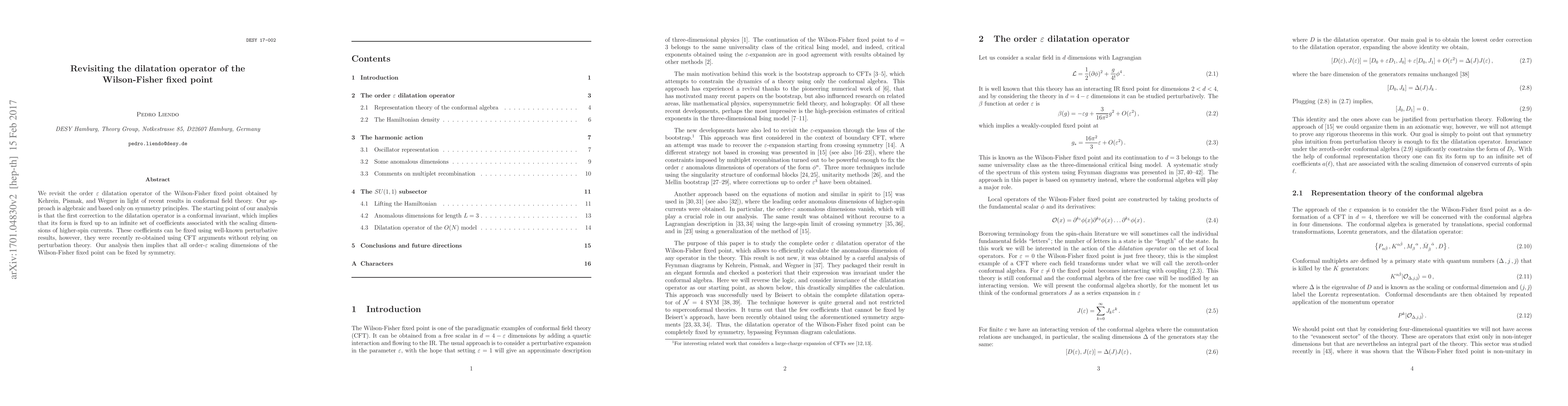This paper revisits the $\varepsilon$-order dilatation operator of the Wilson-Fisher fixed point using algebraic methods grounded in conformal field theory. The authors demonstrate that all order-$\varepsilon$ scaling dimensions can be determined by symmetry principles, leveraging recent conformal field theory results that bypass perturbative calculations.