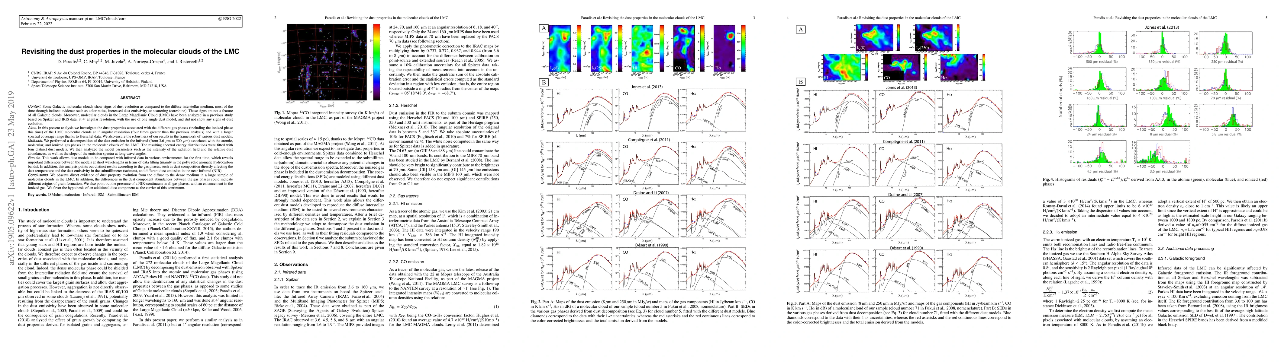 In this present analysis we investigate the dust properties associated with the different gas phases (including the ionized phase this time) of the LMC molecular clouds at 1$^{\prime}$ angular resolution (four times greater than a previous analysis) and with a larger spectral coverage range thanks to Herschel data. We also ensure the robustness of our results in the framework of various dust models. We performed a decomposition of the dust emission in the infrared (3.6 $\mic$ to 500 $\mic$) associated with the atomic, molecular, and ionized gas phases in the molecular clouds of the LMC. The resulting spectral energy distributions were fitted with four distinct dust models. We then analyzed the model parameters such as the intensity of the radiation field and the relative dust abundances, as well as the slope of the emission spectra at long wavelengths. This work allows dust models to be compared with infrared data in various environments for the first time, which reveals important differences between the models at short wavelengths in terms of data fitting (mainly in the PAH bands). In addition, this analysis points out distinct results according to the gas phases, such as dust composition directly affecting the dust temperature and the dust emissivity in the submm, and different dust emission in the near-infrared (NIR). We observe direct evidence of dust property evolution from the diffuse to the dense medium in a large sample of molecular clouds in the LMC. In addition, the differences in the dust component abundances between the gas phases could indicate different origins of grain formation. We also point out the presence of a NIR-continuum in all gas phases, with an enhancement in the ionized gas. We favor the hypothesis of an additional dust component as the carrier of this continuum.