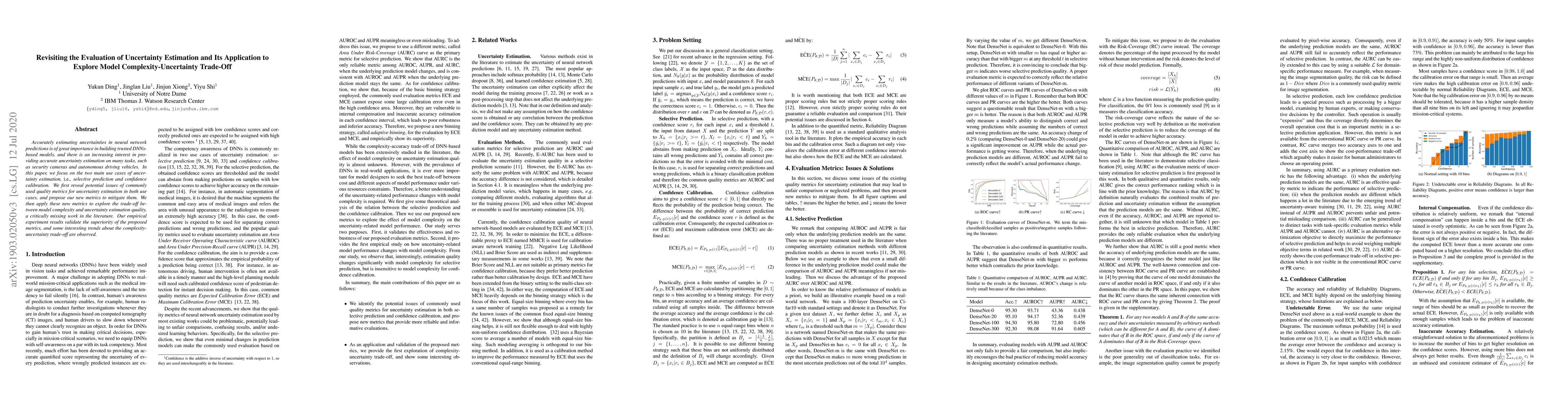 Accurately estimating uncertainties in neural network predictions is of great importance in building trusted DNNs-based models, and there is an increasing interest in providing accurate uncertainty estimation on many tasks, such as security cameras and autonomous driving vehicles. In this paper, we focus on the two main use cases of uncertainty estimation, i.e. selective prediction and confidence calibration. We first reveal potential issues of commonly used quality metrics for uncertainty estimation in both use cases, and propose our new metrics to mitigate them. We then apply these new metrics to explore the trade-off between model complexity and uncertainty estimation quality, a critically missing work in the literature. Our empirical experiment results validate the superiority of the proposed metrics, and some interesting trends about the complexity-uncertainty trade-off are observed.