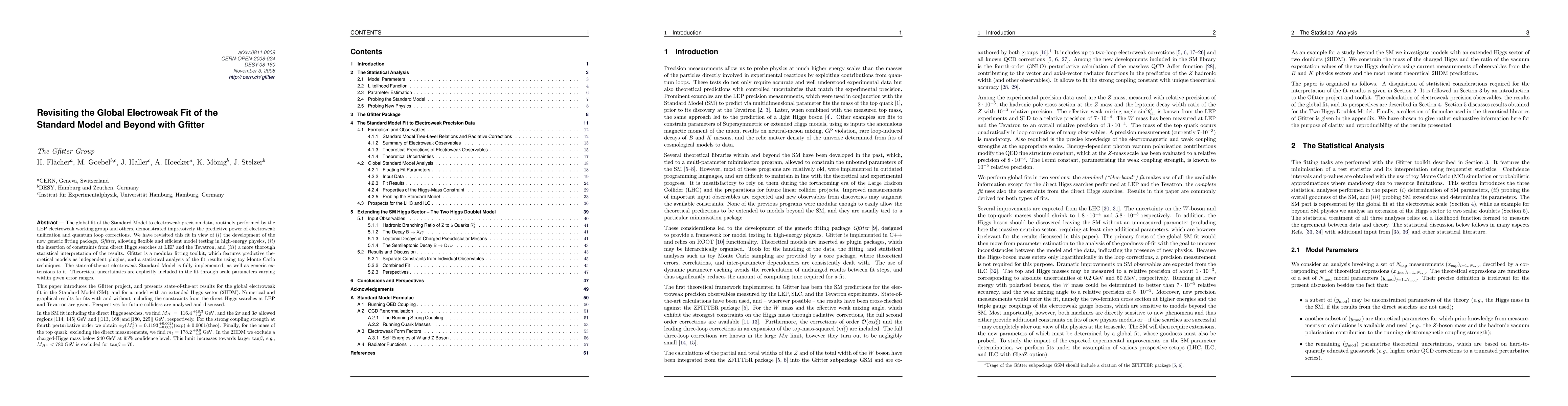 This paper revisits the global electroweak fit of the Standard Model using the new Gfitter package, incorporating constraints from direct Higgs searches and providing a more thorough statistical analysis. The results include updated mass estimates for the Higgs boson, strong coupling constant, and top quark, and exclude certain regions in a 2HDM model.