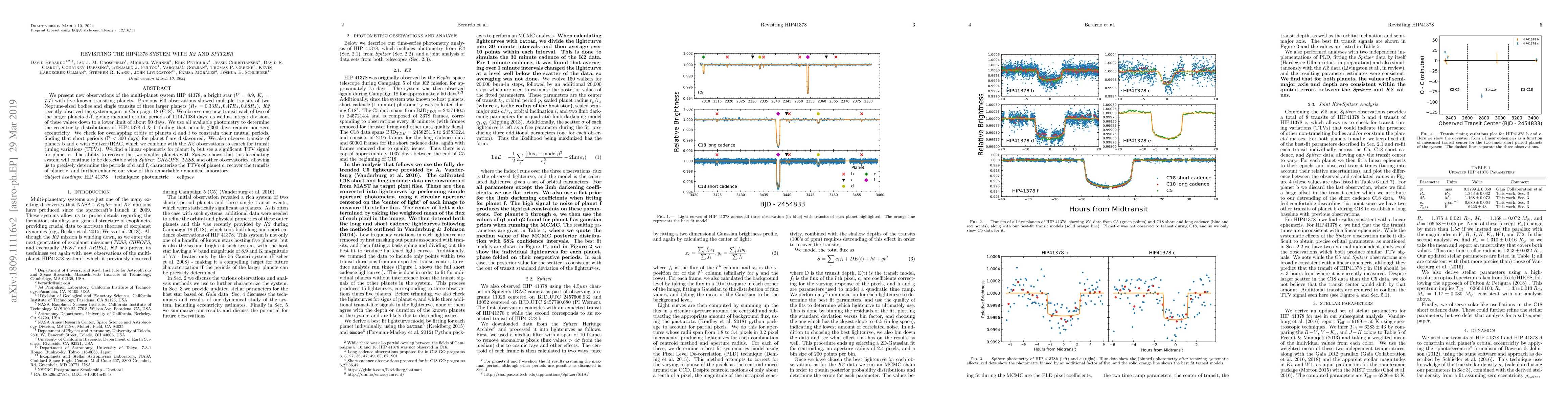 This paper revisits the multi-planet system HIP 41378 using K2 and Spitzer data, finding new transits of planets d and f, and significant transit timing variations for planet c. The study suggests that short orbital periods for planets d and f are unlikely due to orbital instability.