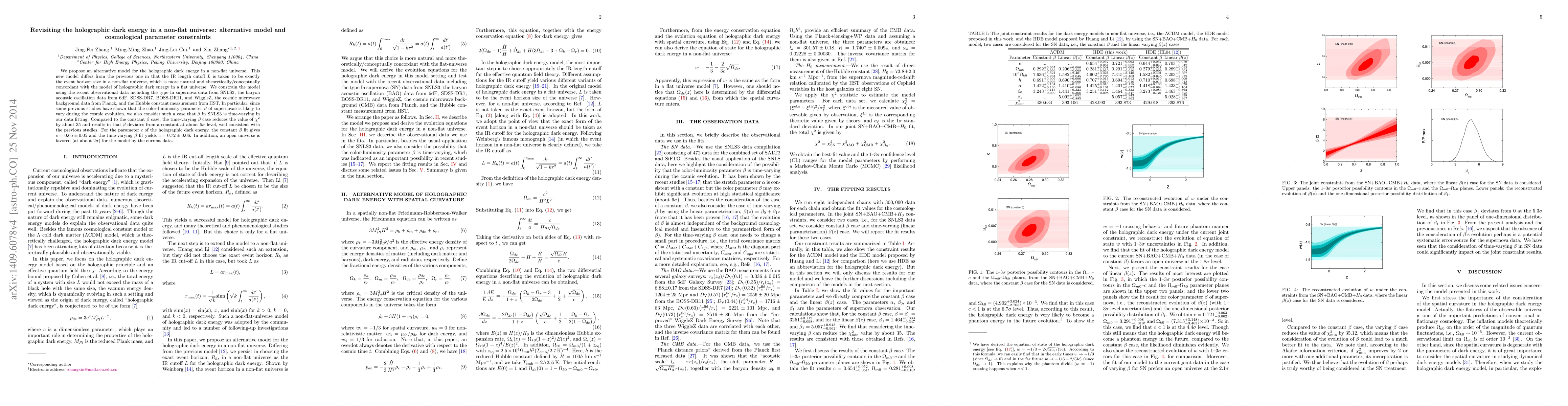 Researchers propose an alternative model for holographic dark energy in non-flat universes, constraining its parameters with observational data from supernovae, baryon acoustic oscillations, cosmic microwave background radiation, and the Hubble constant.