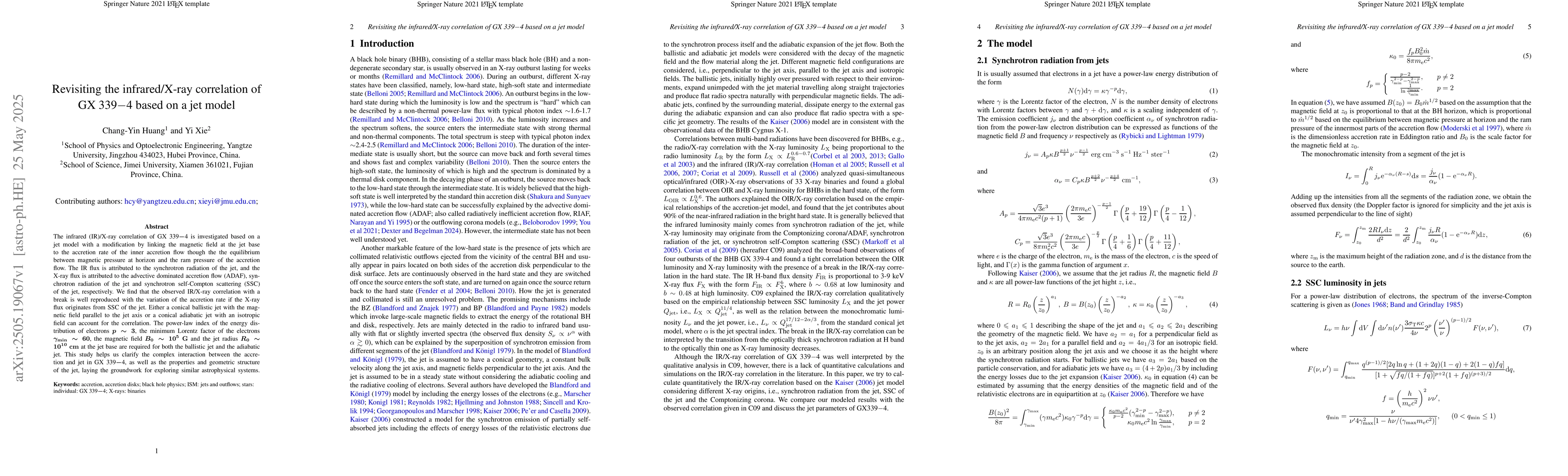 The paper presents a detailed jet model linking magnetic field at the jet base to accretion rate, successfully reproducing the observed IR/X-ray correlation of GX 339-4 through SSC of the jet.