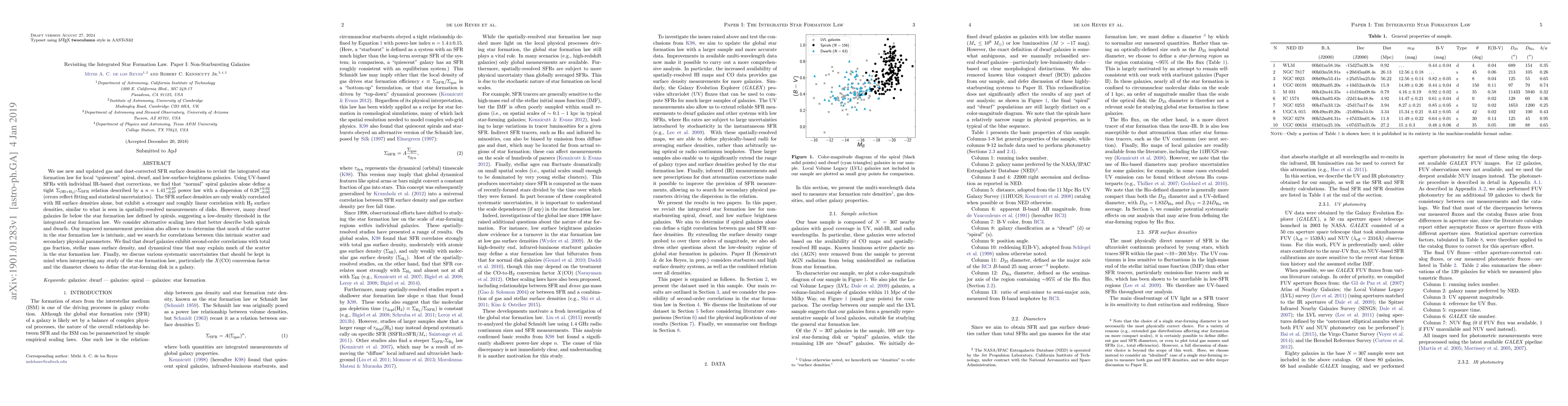 This paper revisits the integrated star formation law for local "quiescent" galaxies, finding that "normal" spiral galaxies follow a power law relation between gas and star formation surface densities. Dwarf galaxies often lie below this relation, suggesting a low-density threshold, and the intrinsic scatter in the law correlates with gas fraction, stellar mass, and dynamical time.