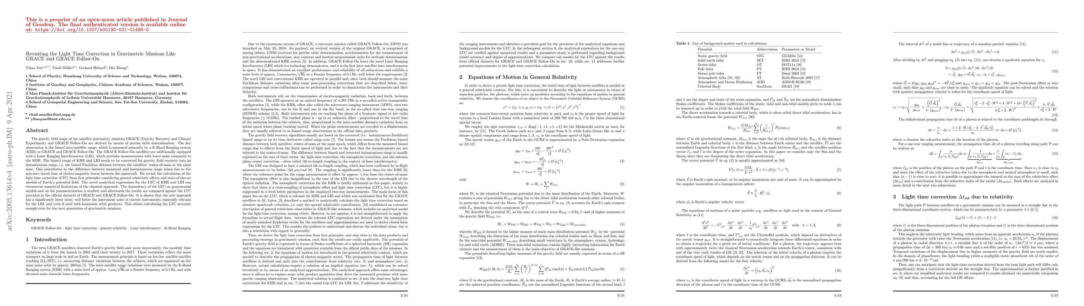 This paper revisits the calculation of light time correction (LTC) for satellite gravimetry missions GRACE and GRACE Follow-On, proposing novel analytical expressions that consider general relativistic effects and advanced Earth potential models. The new LTC approach significantly reduces noise, especially for the Laser Ranging Interferometer, and is shown to be accurate enough for future gravimetric missions.