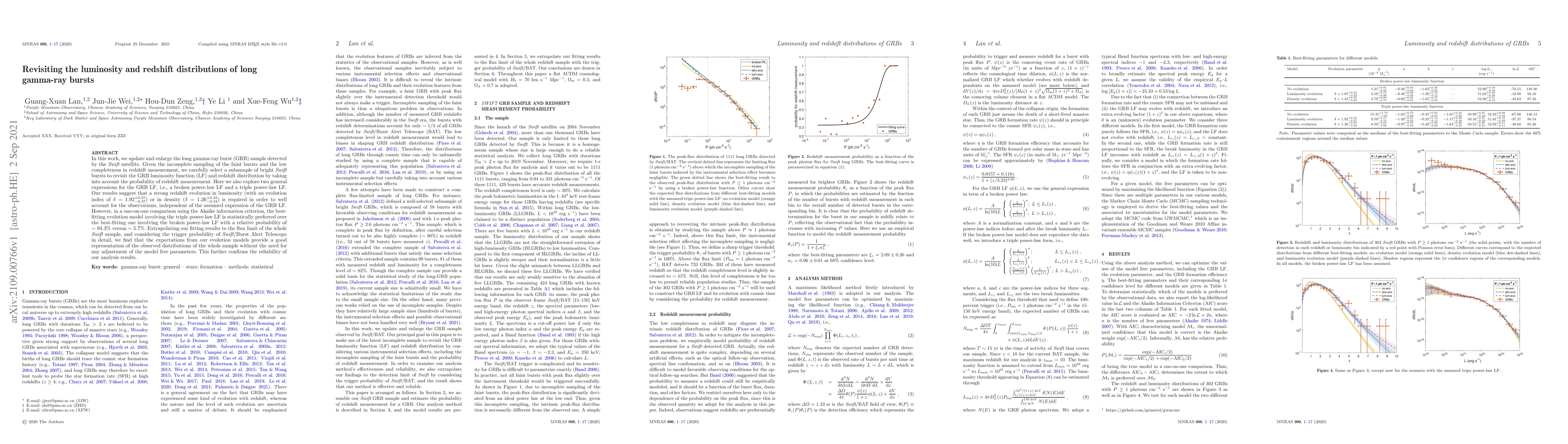 Researchers updated the long gamma-ray burst sample to study luminosity function and redshift distribution, finding that strong evolution in either luminosity or density is required to explain observations, with a triple power-law model preferred over a broken power-law model.