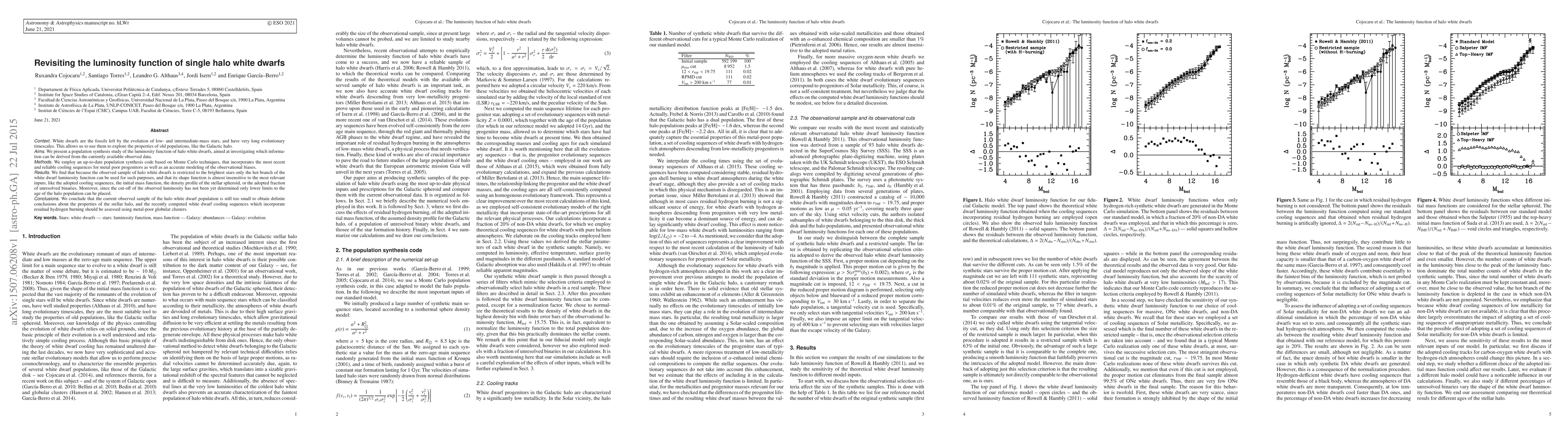 This study revisits the luminosity function of white dwarfs in the Galactic halo using a population synthesis approach, finding that only the hot branch can be analyzed due to observational biases. The results suggest that the current sample size is insufficient to draw definitive conclusions about the halo's properties, and recommend further assessment of cooling sequences using metal-poor clusters.