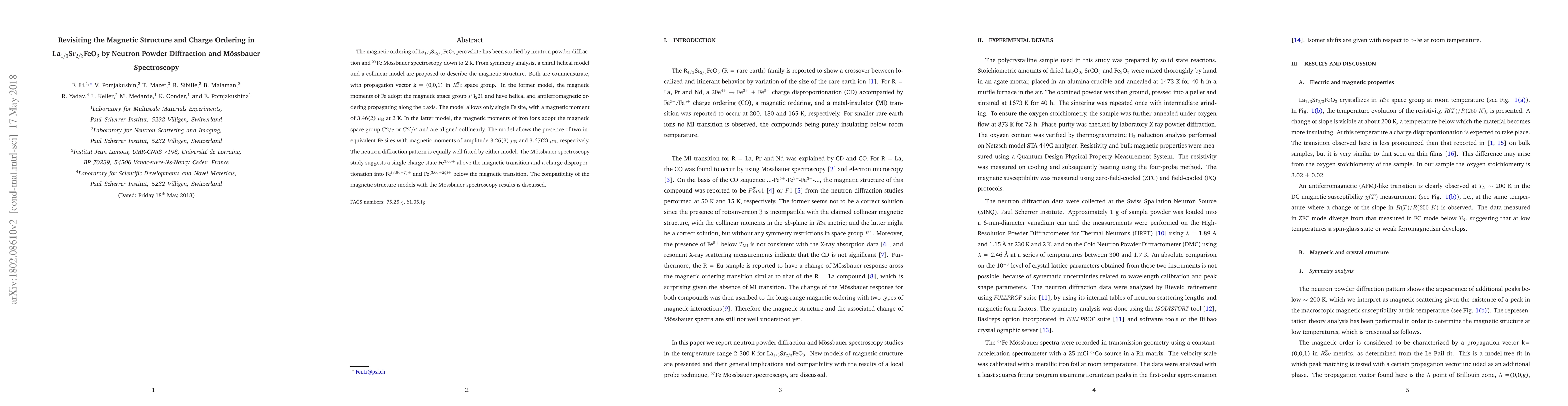 This paper investigates the magnetic structure and charge ordering in La$_{1/3}$Sr$_{2/3}$FeO$_3$ using neutron powder diffraction and Mössbauer spectroscopy. Two magnetic models are proposed, both showing commensurate helical and collinear ordering, but differing in the number and arrangement of Fe sites. Mössbauer spectroscopy reveals charge disproportionation below the magnetic transition.