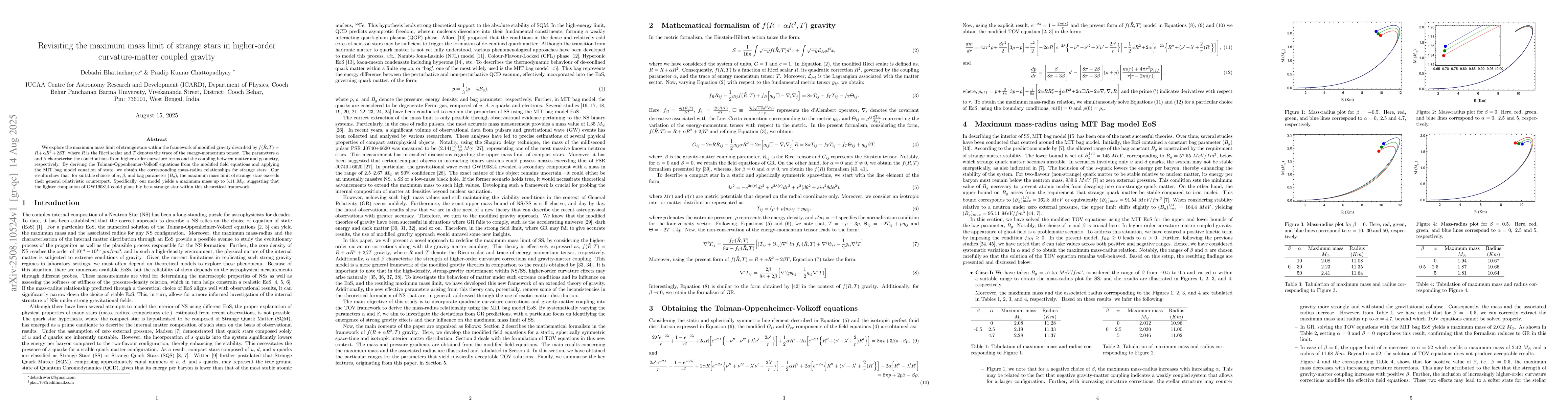 We explore the maximum mass limit of strange stars within the framework of modified gravity described by $f(\tilde{R},T)=R+\alpha R^{2}+2\beta T$, where $R$ is the Ricci scalar and $T$ denotes the trace of the energy-momentum tensor. The parameters $\alpha$ and $\beta$ characterise the contributions from higher-order curvature terms and the coupling between matter and geometry, respectively. By deriving the Tolman-Oppenheimer-Volkoff equations from the modified field equations and applying the MIT bag model equation of state, we obtain the corresponding mass-radius relationships for strange stars. Our results show that, for suitable choices of $\alpha$, $\beta$, and bag parameter $(B_{g})$, the maximum mass limit of strange stars exceeds their general relativistic counterpart. Specifically, our model yields a maximum mass up to $3.11~M_{\odot}$, suggesting that the lighter companion of GW190814 could plausibly be a strange star within this theoretical framework.