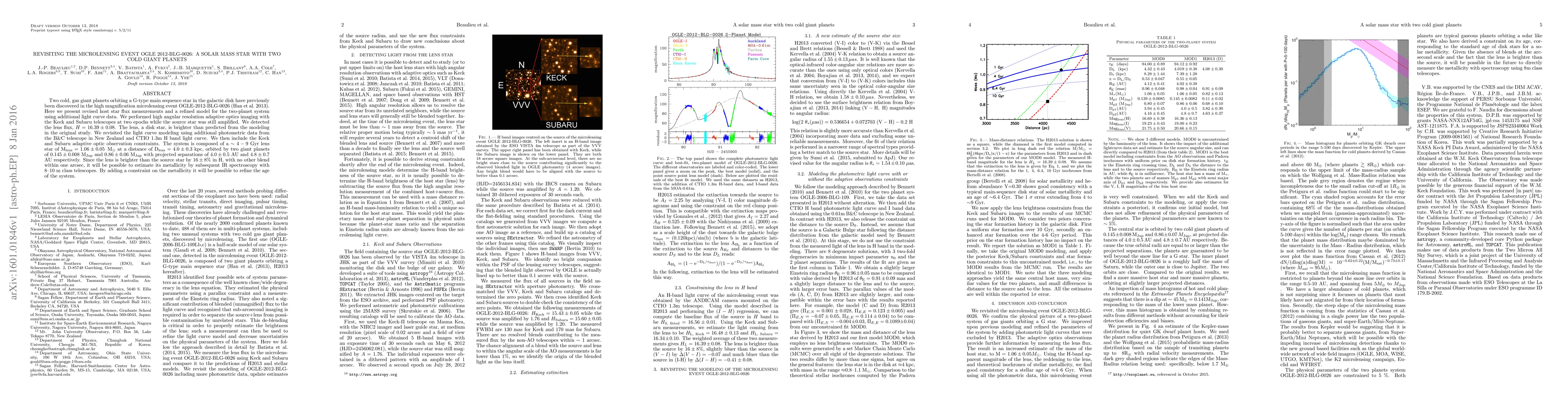 This paper revisits the microlensing event OGLE 2012-BLG-0026, revealing a G-type star with two cold gas giant planets, using refined flux measurements and additional light curve data. The lens star, brighter than initially predicted, is estimated to be 1.06 solar masses and 4.0 kpc away, with the planets having masses of 0.145 and 0.86 Jupiter masses, respectively.