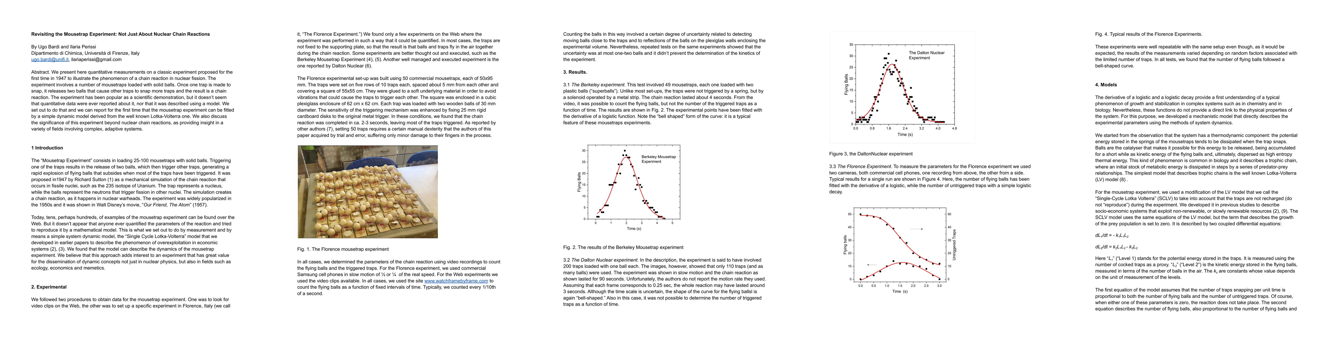 We present quantitative measurements on a classic experiment proposed for the first time in 1947 to illustrate the phenomenon of a chain reaction in nuclear fission. The experiment involves a number of mousetraps loaded with solid balls. Once one trap is made to snap, it releases two balls that cause other traps to snap more traps and the result is a chain reaction. We report for the first time that the mousetrap experiment can be fitted by a simple dynamic model. We also discuss the significance of this experiment beyond nuclear chain reactions, as providing insight in a variety of fields involving complex, adaptive systems.