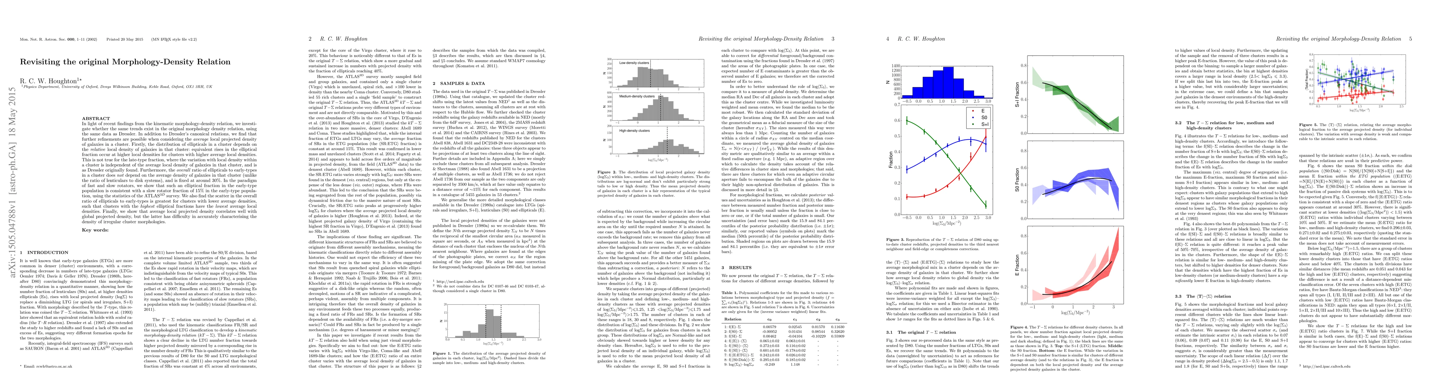 This paper revisits Dressler's original morphology-density relation, finding that elliptical galaxies' distribution in clusters correlates with local density, while late-type galaxies' distribution does not. The ratio of ellipticals to early-types remains constant across densities, suggesting a fixed slow rotator fraction.