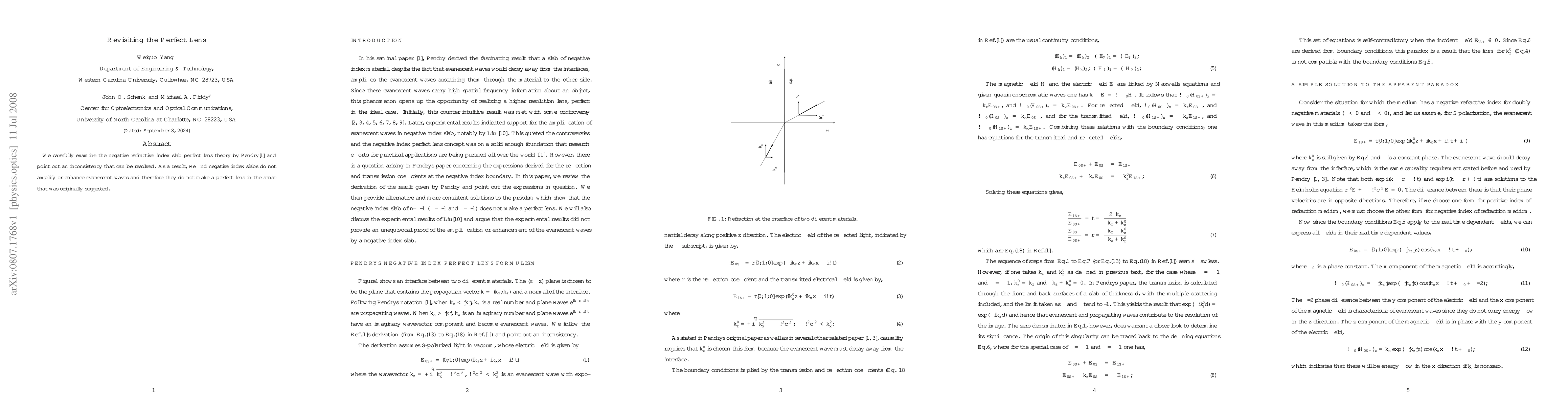 This paper revisits Pendry's theory on perfect lenses using negative refractive index slabs, identifying an inconsistency that shows these lenses do not amplify evanescent waves, thus failing to achieve the originally suggested perfect lens functionality.