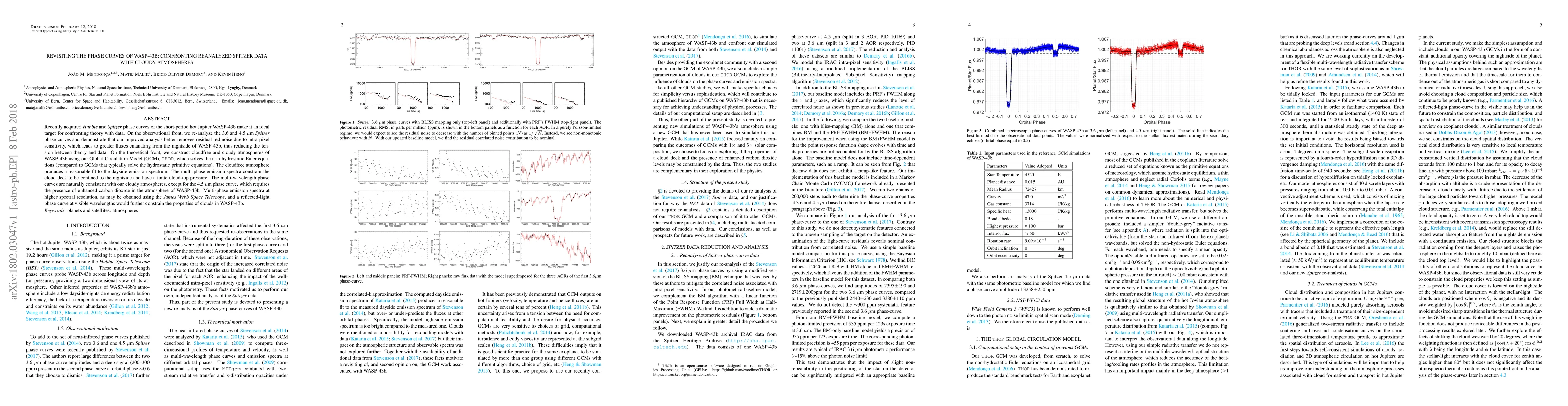 This paper reanalyzes Spitzer data for the hot Jupiter WASP-43b, improving the removal of residual red noise and enhancing nightside flux, which reduces theoretical-data discrepancies. Theoretical models using a Global Circulation Model with cloud-free and cloudy atmospheres show that clouds are likely confined to the nightside, with enhanced CO₂ needed to explain the 4.5 μm phase curve.
