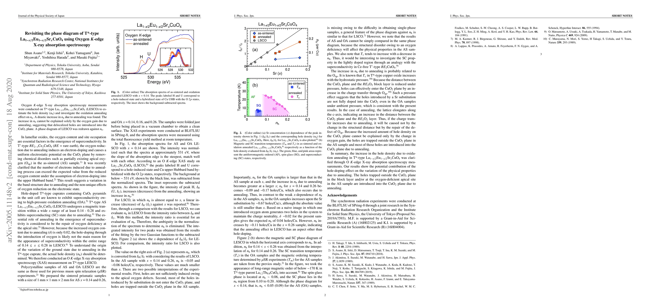 This study uses Oxygen $K$-edge X-ray absorption spectroscopy to measure hole density in T*-type LESCO, revealing a significant increase due to oxidation annealing, indicating the introduction of delocalized holes. The revised phase diagram correlates hole density with the material's properties.