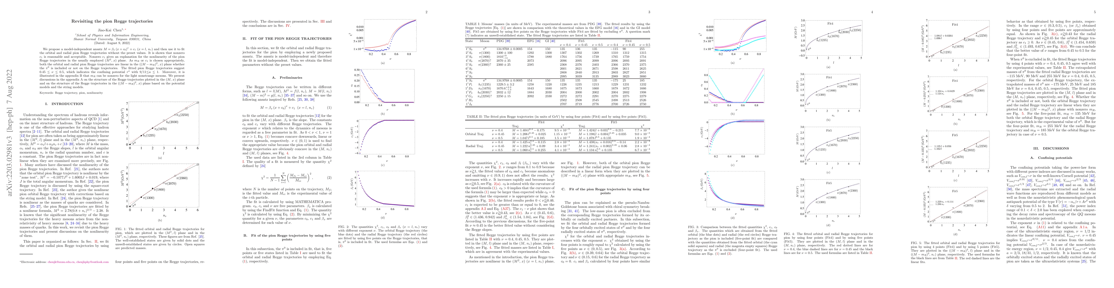 We propose a model-independent ansatz $M={\beta_x}\left(x+c_0\right)^{\nu}+c_1$ ($x=l,\,n_r$) and then use it to fit the orbital and radial pion Regge trajectories without the preset values. It is shown that nonzero $c_1$ is reasonable and acceptable. Nonzero $c_1$ gives an explanation for the nonlinearity of the pion Regge trajectories in the usually employed $(M^2,\,x)$ plane. As $m_R$ or $c_1$ is chosen appropriately, both the orbital and radial pion Regge trajectories are linear in the $((M-m_R)^2,\,x)$ plane whether the $\pi^0$ is included or not on the Regge trajectories. The fitted pion Regge trajectories suggest $0.45\le\nu\le0.5$, which indicates the confining potential $r^a$ with $9/11{\le}a\le1$. Moreover, it is illustrated in the appendix B that $m_R$ can be nonzero for the light nonstrange mesons. We present discussions in the appendix A on the structure of the Regge trajectories plotted in the $(M,\,x)$ plane and on the structure of the Regge trajectories in the $((M-m_R)^2,\,x)$ plane based on the potential models and the string models.