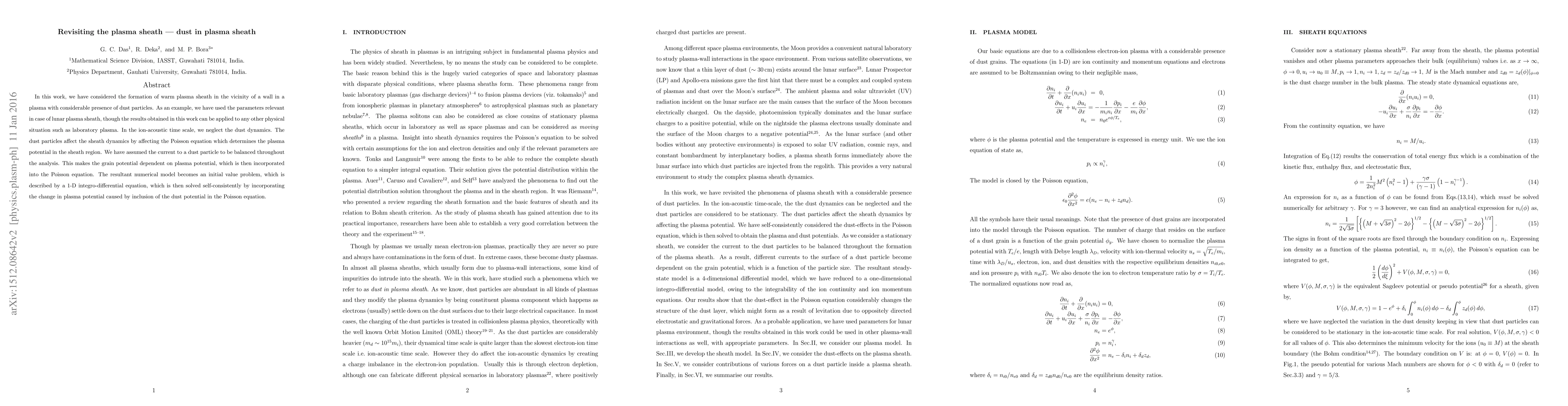This paper investigates the dynamics of a warm plasma sheath near a wall in the presence of dust particles, using lunar plasma sheath as an example. The dust particles influence the sheath's dynamics through the Poisson equation, which is solved self-consistently to determine the plasma potential, incorporating the dust grain potential.