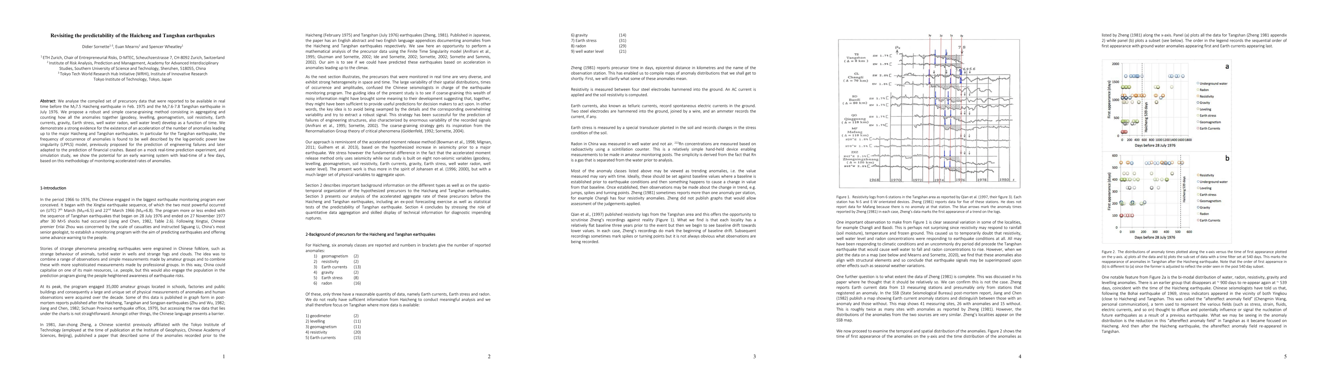 This study re-examines precursory data for the 1975 Haicheng and 1976 Tangshan earthquakes, proposing a method to aggregate and time-series analyze various anomalies. Results show an acceleration of anomalies before both quakes, particularly a log-periodic pattern for Tangshan, suggesting potential for early warning systems with lead-times of a few days.