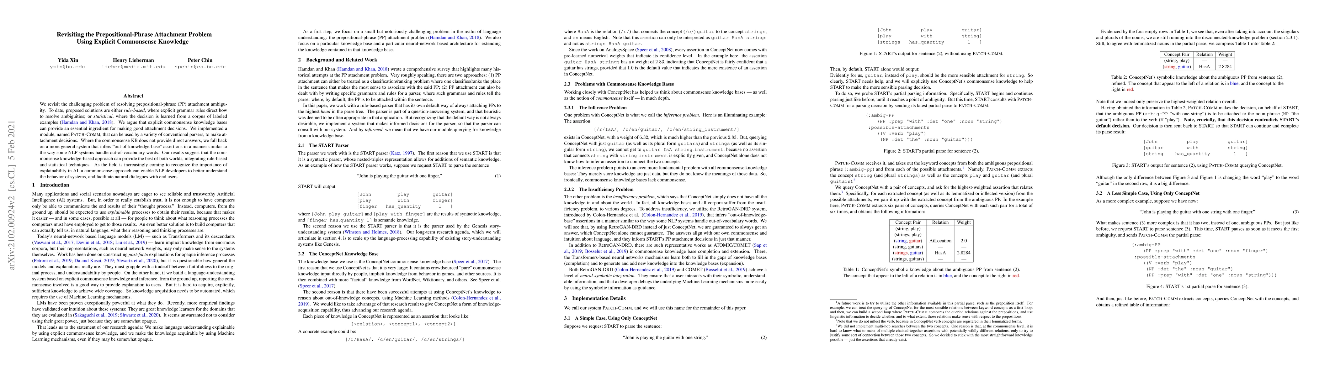 This paper proposes a new method to resolve prepositional-phrase attachment ambiguity using explicit commonsense knowledge, introducing a module called Patch-Comm that integrates both rule-based and statistical techniques for better decision-making, enhancing the explainability and usability of NLP systems.