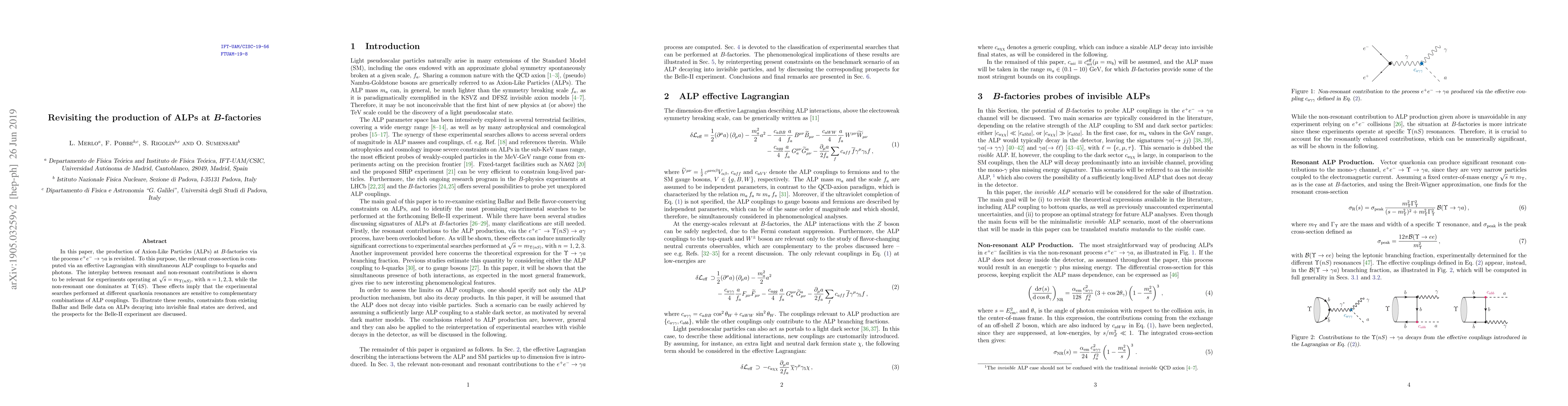 This paper revisits the production of Axion-Like Particles (ALPs) at $B$-factories through the $e^+e^- \to \gamma a$ process, considering both resonant and non-resonant contributions. It highlights the significance of these contributions at different $\Upsilon(nS)$ resonances and discusses the complementary sensitivity of experimental searches to various ALP coupling combinations.