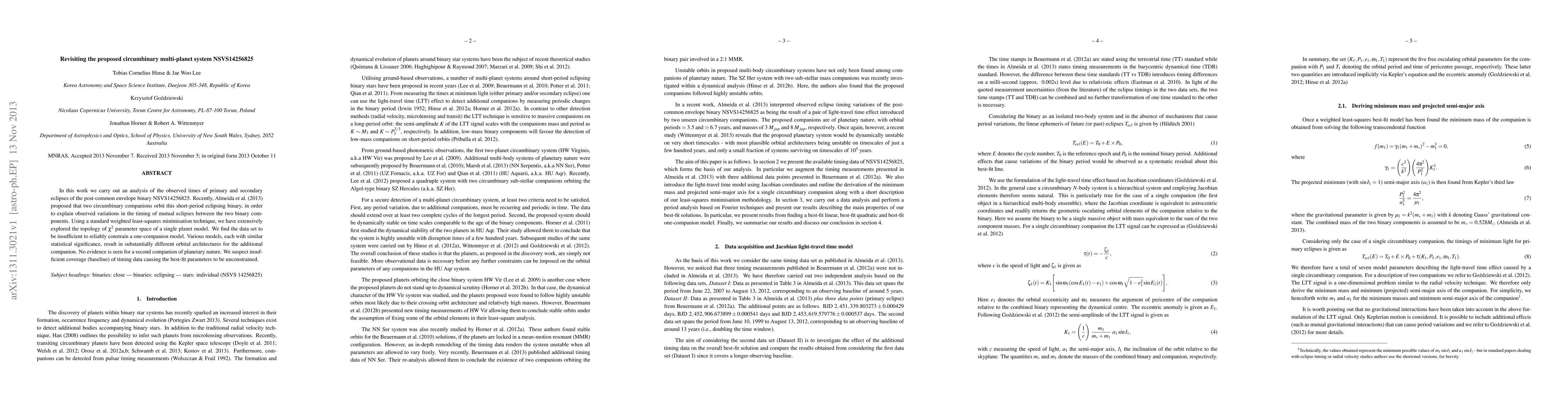 In this work we carry out an analysis of the observed times of primary and secondary eclipses of the post-common envelope binary NSVS14256825. Recently, \cite{Almeida2013} proposed that two circumbinary companions orbit this short-period eclipsing binary, in order to explain observed variations in the timing of mutual eclipses between the two binary components. Using a standard weighted least-squares minimisation technique, we have extensively explored the topology of $\chi^2$ parameter space of a single planet model. We find the data set to be insufficient to reliably constrain a one-companion model. Various models, each with similar statistical significance, result in substantially different orbital architectures for the additional companion. No evidence is seen for a second companion of planetary nature. We suspect insufficient coverage (baseline) of timing data causing the best-fit parameters to be unconstrained.