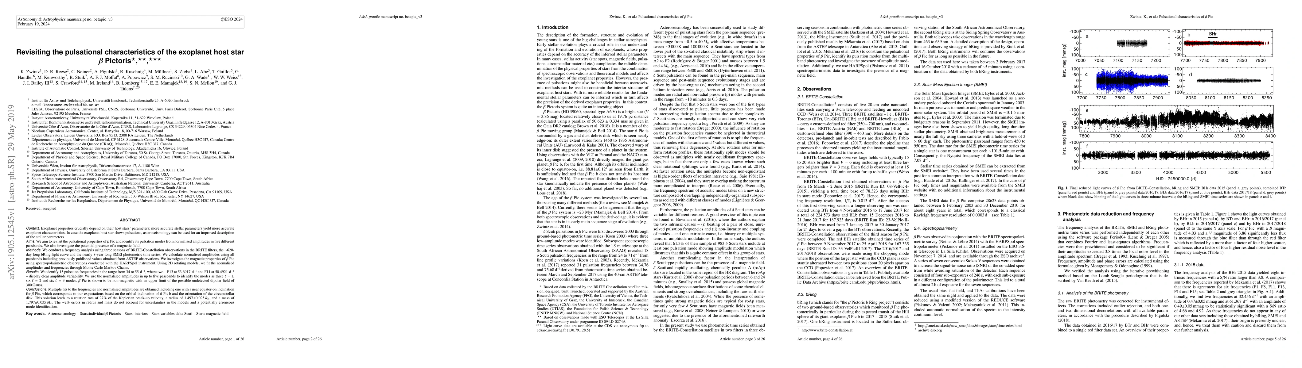 Exoplanet properties crucially depend on their host stars' parameters. In case the exoplanet host star shows pulsations, asteroseismology can be used for an improved description of the stellar parameters. We aim to revisit the pulsational properties of beta Pic and identify its pulsation modes from normalised amplitudes in five different passbands. We also investigate the potential presence of a magnetic field. We conduct a frequency analysis using three seasons of BRITE-Constellation observations in the BRITE blue and red filters, the ~620-day long bRing light curve and the nearly 8-year long SMEI photometric time series. We calculate normalised amplitudes using all passbands including previously published values obtained from ASTEP observations. We investigate the magnetic properties of beta Pic using spectropolarimetric observations conducted with the HARPSpol instrument. Using 2D rotating models, we fit the normalised amplitudes and frequencies through Monte Carlo Markov Chains. We identify 15 pulsation frequencies in the range from 34 to 55c/d, where two display clear amplitude variability. We use the normalised amplitudes in up to five passbands to identify the modes as three l = 1, six l = 2 and six l = 3 modes. beta Pic is shown to be non-magnetic with an upper limit of the possible undetected dipolar field of 300G. Multiple fits to the frequencies and normalised amplitudes are obtained including one with a near equator-on inclination for beta Pic, which corresponds to our expectations based on the orbital inclination of beta Pic b and the orientation of the circumstellar disk. This solution leads to a rotation rate of 27% of the Keplerian break-up velocity, a radius of 1.497+-0.025Rsun, and a mass of 1.797+-0.035Msun. The ~2% errors in radius and mass do not account for uncertainties in the models and a potentially erroneous mode-identification.