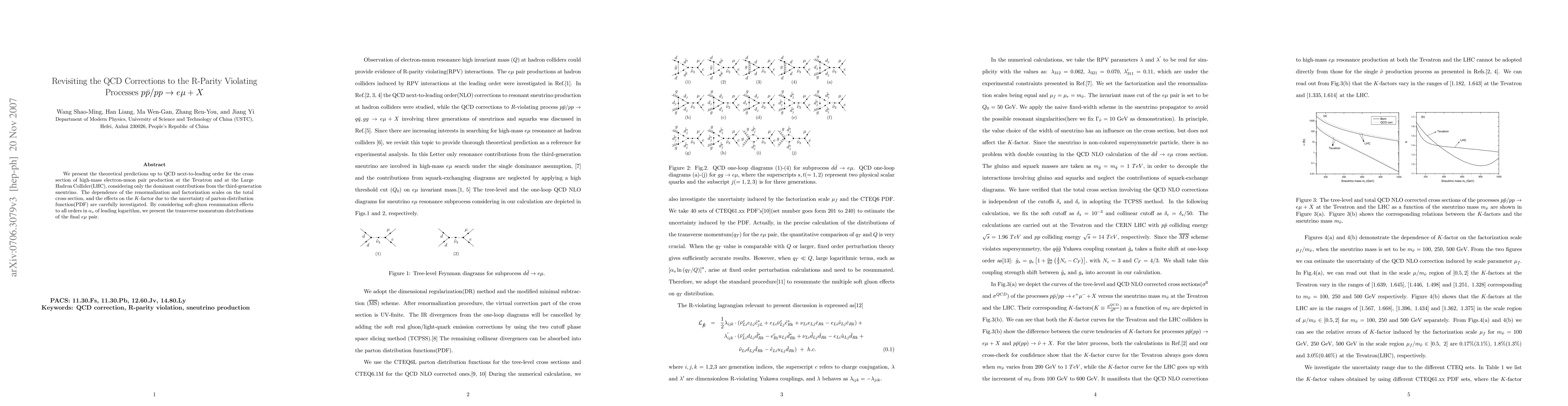 This paper provides theoretical predictions for the cross section of high-mass electron-muon pair production at the Tevatron and LHC, incorporating QCD NLO corrections and focusing on third-generation sneutrino contributions. It also examines the impact of renormalization and factorization scales, parton distribution function uncertainties, and soft-gluon resummation on the K-factor and transverse momentum distributions.