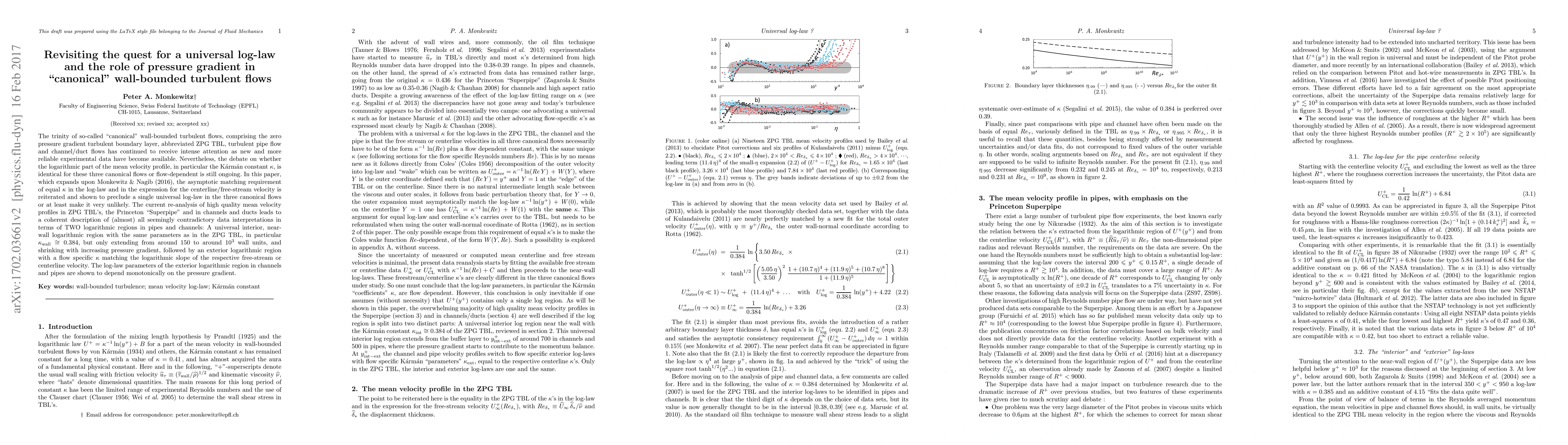 This paper revisits the debate on the universality of the log-law in "canonical" wall-bounded turbulent flows, finding that while a universal interior logarithmic region exists, an exterior region with flow-specific parameters emerges, particularly dependent on the pressure gradient.
