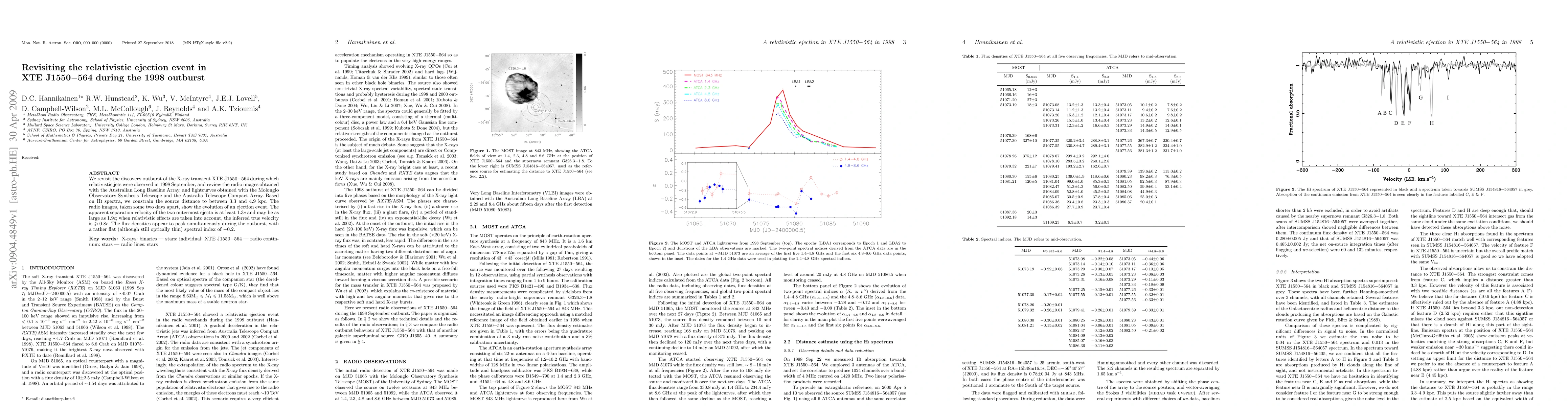 The study re-examines the 1998 outburst of X-ray transient XTE J1550-564, confirming relativistic jets' presence. Using HI spectra, it constrains the source distance and reveals radio images showing ejecta with apparent velocities >0.8c, challenging traditional jet models.