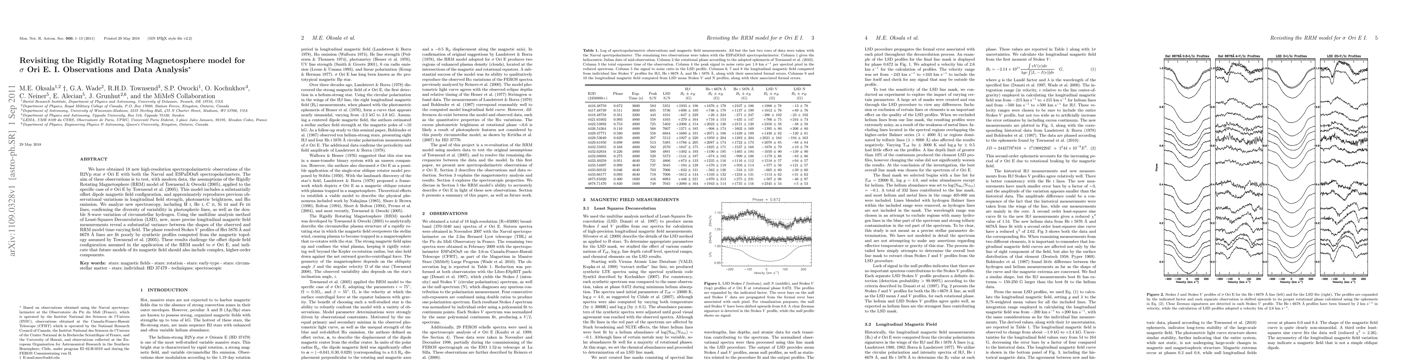 We have obtained 18 new high-resolution spectropolarimetric observations of the B2Vp star sigma Ori E with both the Narval and ESPaDOnS spectropolarimeters. The aim of these observations is to test, with modern data, the assumptions of the Rigidly Rotating Magnetosphere (RRM) model of Townsend & Owocki (2005), applied to the specific case of sigma Ori E by Townsend et al. (2005). This model includes a substantially offset dipole magnetic field configuration, and approximately reproduces previous observational variations in longitudinal field strength, photometric brightness, and Halpha emission. We analyze new spectroscopy, including H I, He I, C II, Si III and Fe III lines, confirming the diversity of variability in photospheric lines, as well as the double S-wave variation of circumstellar hydrogen. Using the multiline analysis method of Least-Squares Deconvolution (LSD), new, more precise longitudinal magnetic field measurements reveal a substantial variance between the shapes of the observed and RRM model time-varying field. The phase resolved Stokes V profiles of He I 5876 A and 6678 A lines are fit poorly by synthetic profiles computed from the magnetic topology assumed by Townsend et al. (2005). These results challenge the offset dipole field configuration assumed in the application of the RRM model to sigma Ori E, and indicate that future models of its magnetic field should also include complex, higher-order components.
