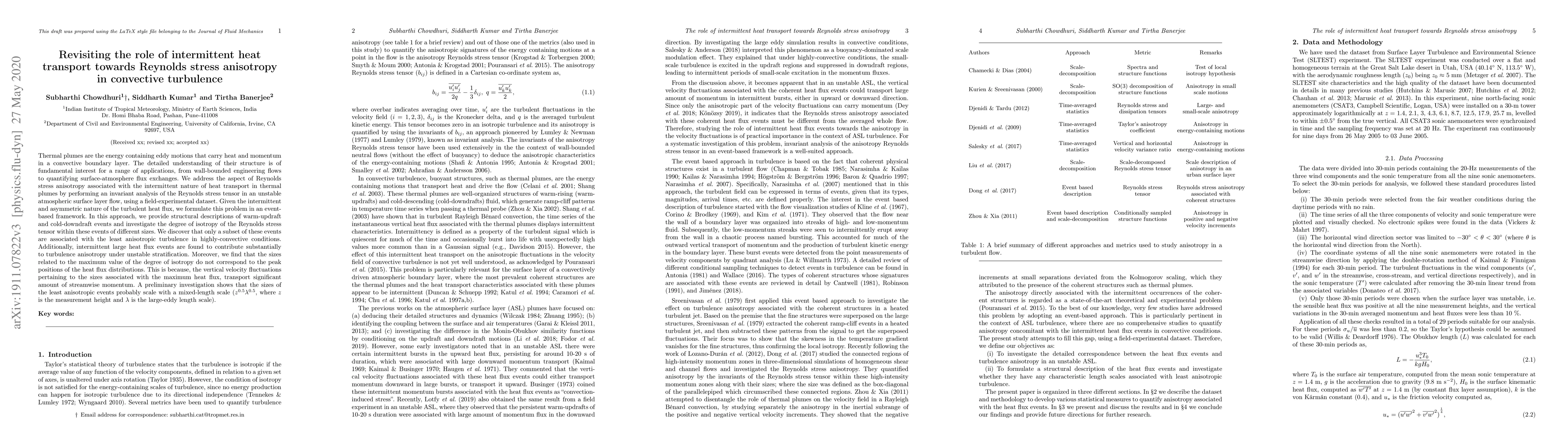 This paper investigates the relationship between intermittent heat transport in thermal plumes and Reynolds stress anisotropy in convective turbulence using field data from an unstable atmospheric surface layer. It finds that only specific intermittent heat flux events correlate with the least anisotropic turbulence, while large heat flux events significantly contribute to turbulence anisotropy.