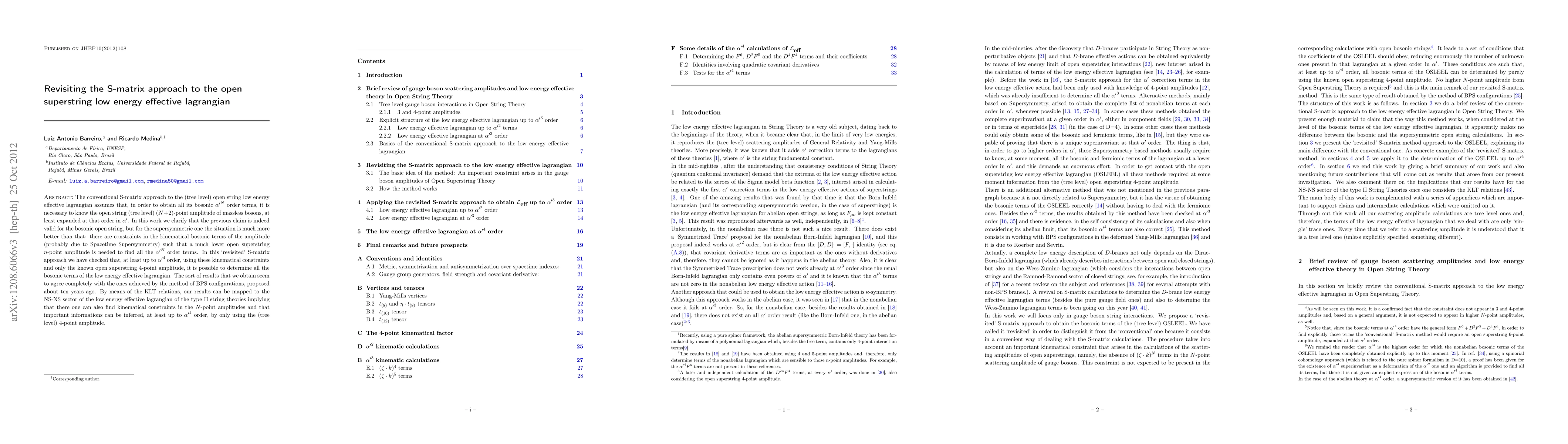 The conventional S-matrix approach to the (tree level) open string low energy effective lagrangian assumes that, in order to obtain all its bosonic ${\alpha'}^N$ order terms, it is necessary to know the open string (tree level) $(N+2)$-point amplitude of massless bosons, at least expanded at that order in $\alpha'$. In this work we clarify that the previous claim is indeed valid for the bosonic open string, but for the supersymmetric one the situation is much more better than that: there are constraints in the kinematical bosonic terms of the amplitude (probably due to Spacetime Supersymmetry) such that a much lower open superstring $n$-point amplitude is needed to find all the ${\alpha'}^N$ order terms. In this `revisited' S-matrix approach we have checked that, at least up to ${\alpha'}^4$ order, using these kinematical constraints and only the known open superstring 4-point amplitude, it is possible to determine all the bosonic terms of the low energy effective lagrangian. The sort of results that we obtain seem to agree completely with the ones achieved by the method of BPS configurations, proposed about ten years ago. By means of the KLT relations, our results can be mapped to the NS-NS sector of the low energy effective lagrangian of the type II string theories implying that there one can also find kinematical constraints in the $N$-point amplitudes and that important informations can be inferred, at least up to ${\alpha'}^4$ order, by only using the (tree level) 4-point amplitude.