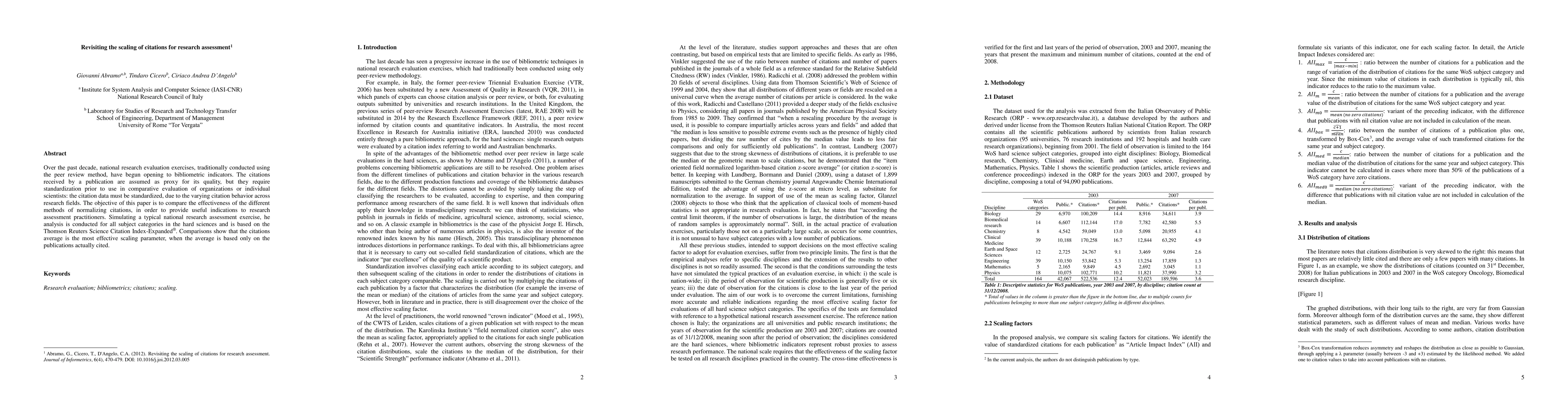 Over the past decade, national research evaluation exercises, traditionally conducted using the peer review method, have begun opening to bibliometric indicators. The citations received by a publication are assumed as proxy for its quality, but they require standardization prior to use in comparative evaluation of organizations or individual scientists: the citation data must be standardized, due to the varying citation behavior across research fields. The objective of this paper is to compare the effectiveness of the different methods of normalizing citations, in order to provide useful indications to research assessment practitioners. Simulating a typical national research assessment exercise, he analysis is conducted for all subject categories in the hard sciences and is based on the Thomson Reuters Science Citation Index-Expanded. Comparisons show that the citations average is the most effective scaling parameter, when the average is based only on the publications actually cited.