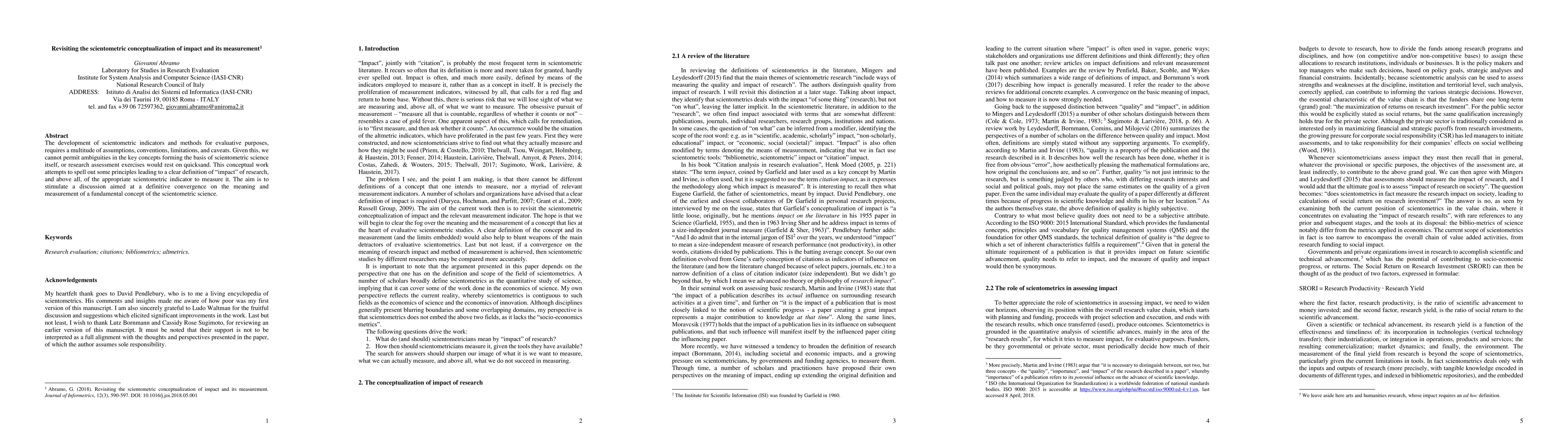 This paper revisits the conceptualization and measurement of research impact in scientometrics, emphasizing the need for clear definitions and appropriate indicators to avoid ambiguities in research assessment. It aims to stimulate discussion for a definitive consensus on the fundamental concept of research impact.