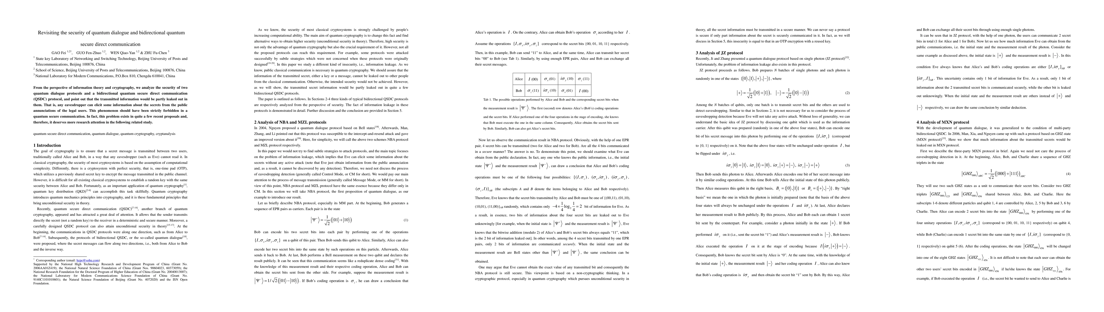From the perspective of information theory and cryptography, we analyze the security of two quantum dialogue protocols and a bidirectional quantum secure direct communication (QSDC) protocol, and point out that the transmitted information would be partly leaked out in them. That is, any eavesdropper can elicit some information about the secrets from the public annunciations of the legal users. This phenomenon should have been strictly forbidden in a quantum secure communication. In fact, this problem exists in quite a few recent proposals and, therefore, it deserves more research attention in the following related study.