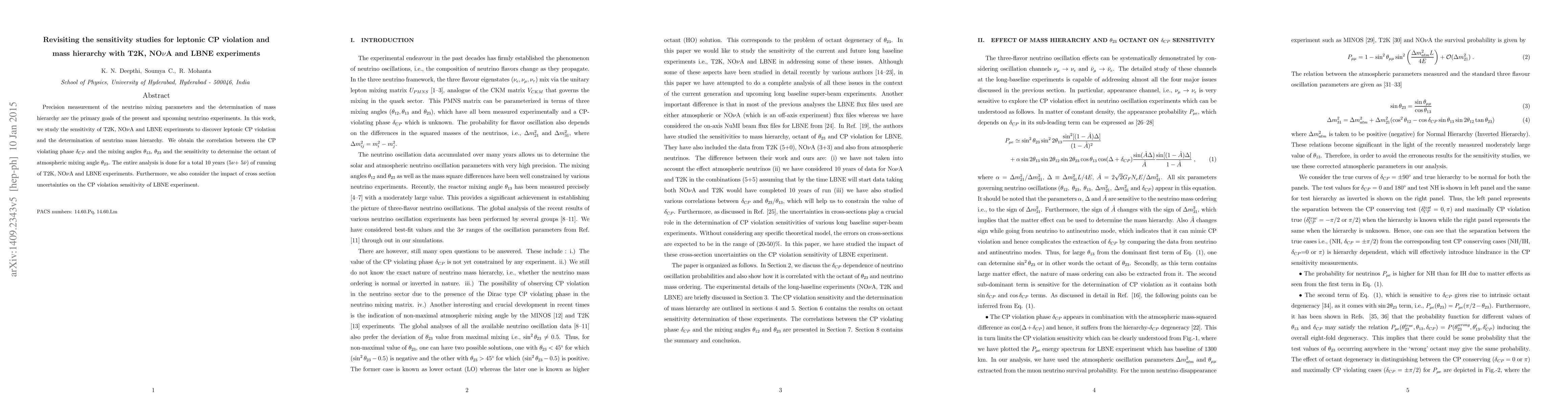 This paper evaluates the sensitivity of T2K, NOvA, and LBNE experiments to detect leptonic CP violation and determine the neutrino mass hierarchy over a 10-year operational period. The study correlates the CP violating phase $\delta_{CP}$ with mixing angles and assesses the impact of cross section uncertainties on LBNE's CP sensitivity.