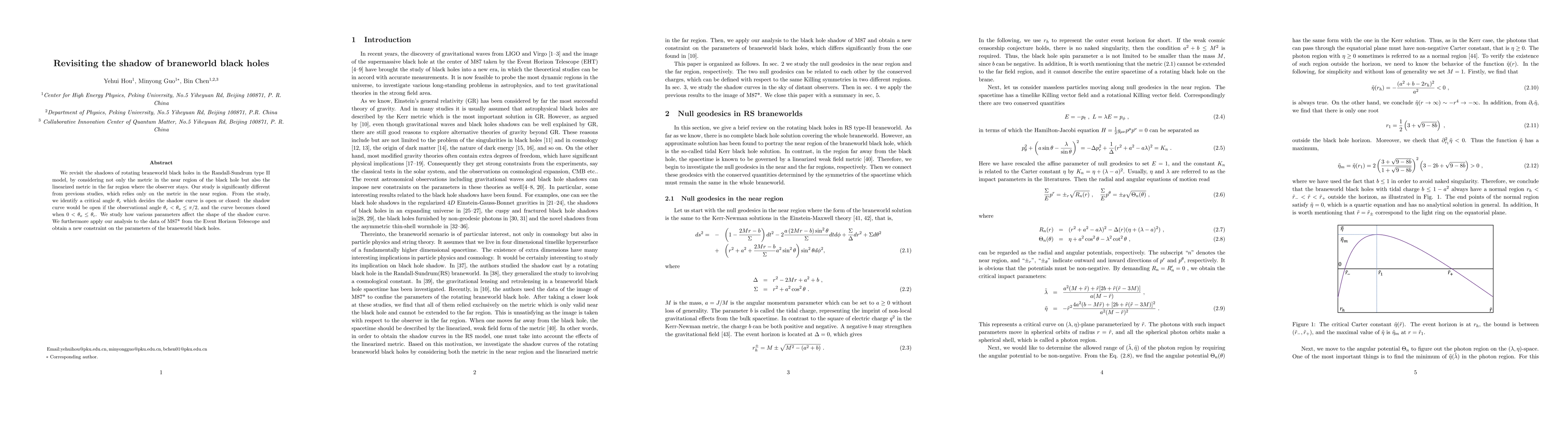 This paper revisits the shadows of rotating braneworld black holes in the Randall-Sundrum model, identifying a critical angle $\theta_c$ that determines whether the shadow curve is open or closed. The study provides new constraints on braneworld black hole parameters by applying the analysis to M87* data.