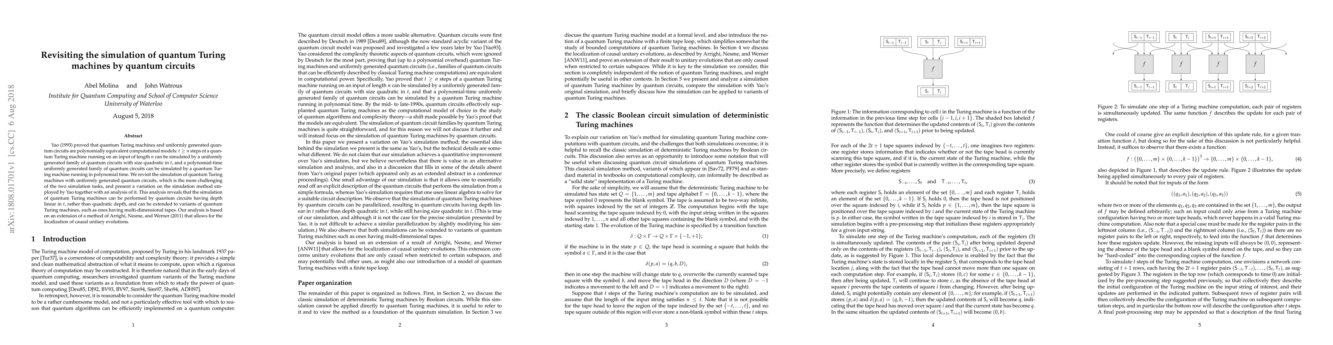 This paper revisits the simulation of quantum Turing machines (QTM) by quantum circuits, showing that QTMs can be simulated by quantum circuits of linear depth, improving upon Yao's (1993) quadratic depth requirement. The enhanced simulation method extends to multi-dimensional tape QTM variants.