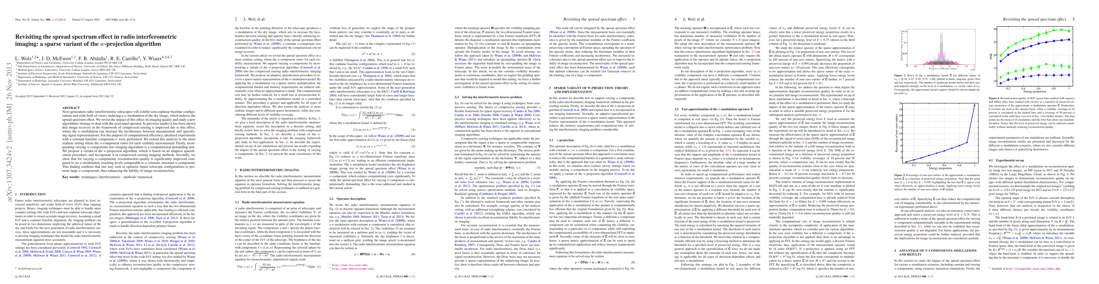 This paper revisits the spread spectrum effect in radio interferometric imaging, proposing a sparse variant of the w-projection algorithm to handle varying w-components in the image reconstruction process. The study finds that incorporating w-modulation improves image recovery quality, suggesting that optimizing telescope configurations to enhance the spread spectrum effect can significantly boost imaging fidelity.