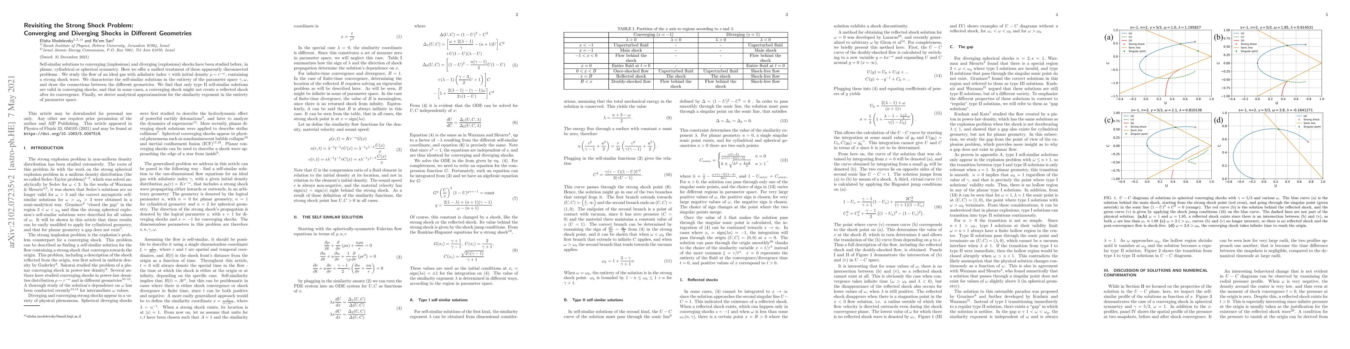 This paper provides a unified analysis of self-similar solutions for converging and diverging shock waves in various geometries, finding that only type II solutions are valid for converging shocks and deriving analytical approximations for the similarity exponent across different geometries.