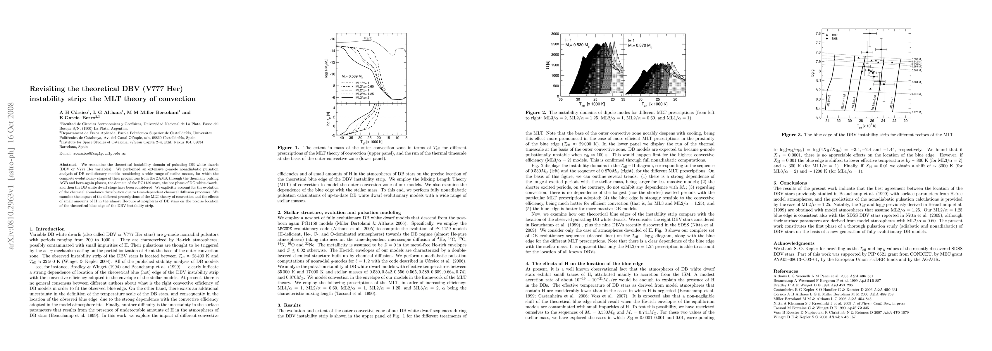 This paper revisits the theoretical DBV instability strip for pulsating DB white dwarfs, analyzing the impact of various MLT convection theory prescriptions and small amounts of hydrogen on the strip's blue edge, alongside detailed evolutionary models considering chemical diffusion.