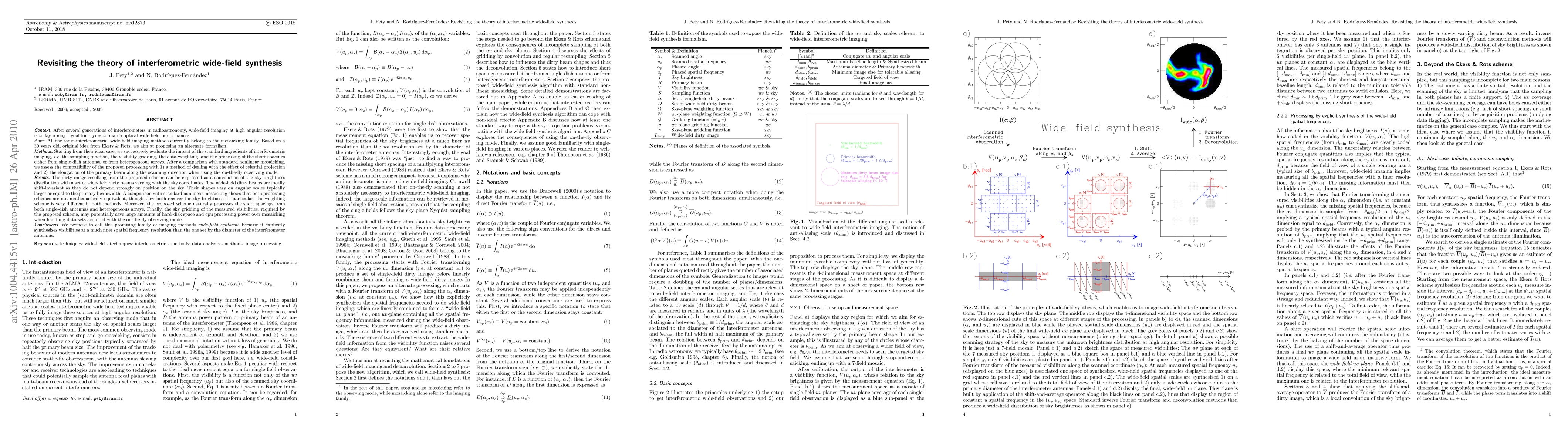 After several generations of interferometers in radioastronomy, wide-field imaging at high angular resolution is today a major goal for trying to match optical wide-field performances. All the radio-interferometric, wide-field imaging methods currently belong to the mosaicking family. Based on a 30 years old, original idea from Ekers & Rots, we aim at proposing an alternate formalism. Starting from their ideal case, we successively evaluate the impact of the standard ingredients of interferometric imaging. A comparison with standard nonlinear mosaicking shows that both processing schemes are not mathematically equivalent, though they both recover the sky brightness. In particular, the weighting scheme is very different in both methods. Moreover, the proposed scheme naturally processes the short spacings from both single-dish antennas and heterogeneous arrays. Finally, the sky gridding of the measured visibilities, required by the proposed scheme, may potentially save large amounts of hard-disk space and cpu processing power over mosaicking when handling data sets acquired with the on-the-fly observing mode. We propose to call this promising family of imaging methods wide-field synthesis because it explicitly synthesizes visibilities at a much finer spatial frequency resolution than the one set by the diameter of the interferometer antennas.