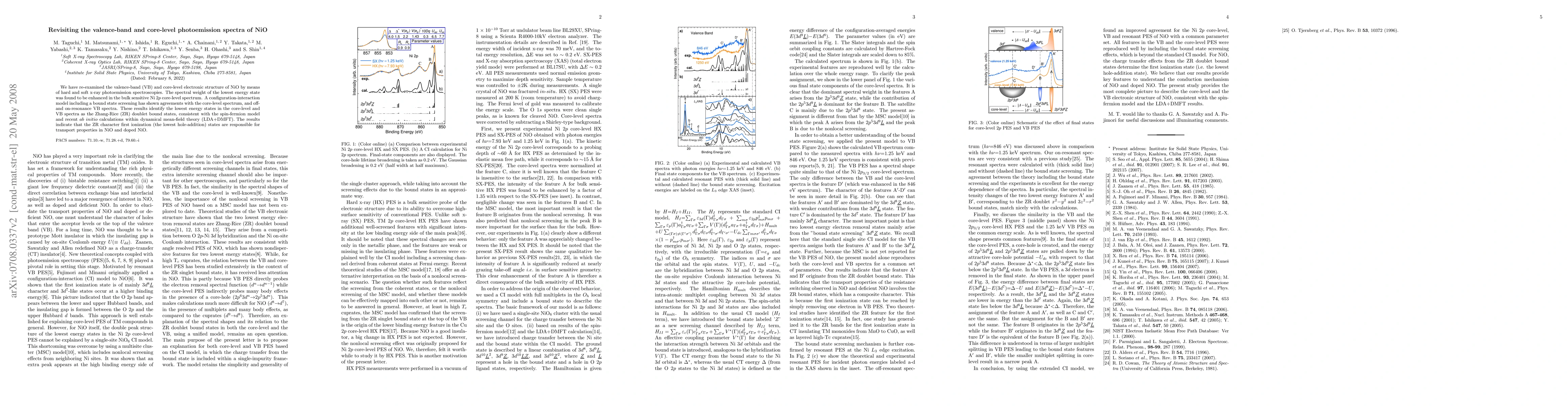 This study re-examined NiO's valence-band and core-level electronic structure via x-ray photoemission spectroscopy, finding enhanced spectral weight in the Ni 2p core-level spectra. A configuration-interaction model aligns well with observed spectra, identifying the lowest energy state as the Zhang-Rice doublet bound state, consistent with spin-fermion models and recent LDA + DMFT calculations.