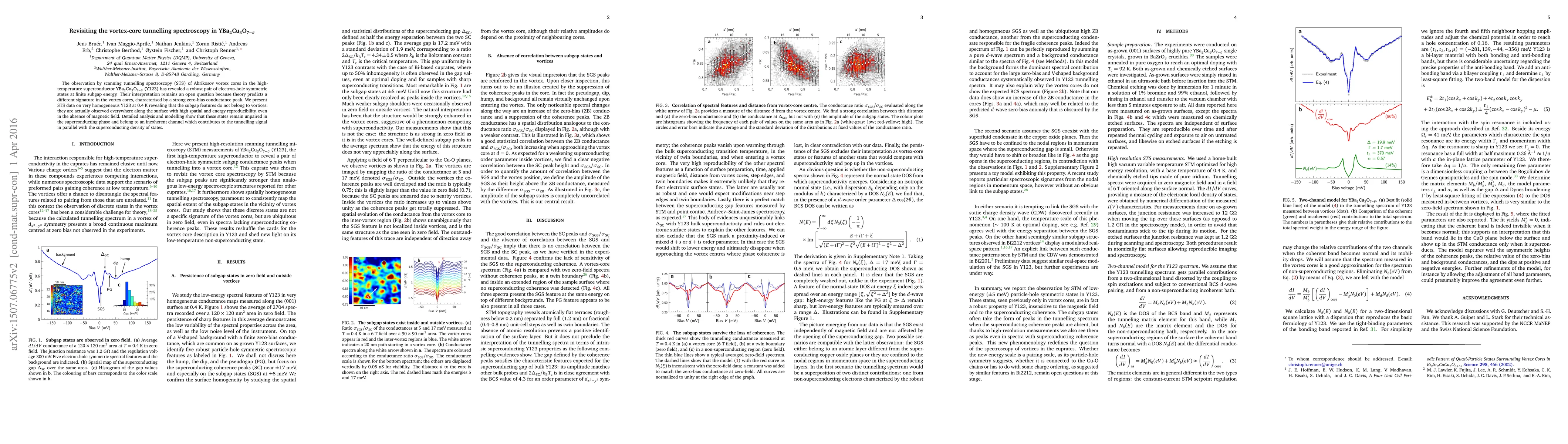 Researchers used scanning tunnelling spectroscopy to study YBa$_2$Cu$_3$O$_{7- heta}$ at 0.4 K, finding a pair of electron-hole symmetric states with no connection to Abrikosov vortex cores, which they believe originate from an incoherent channel contributing to the superconducting density of states.