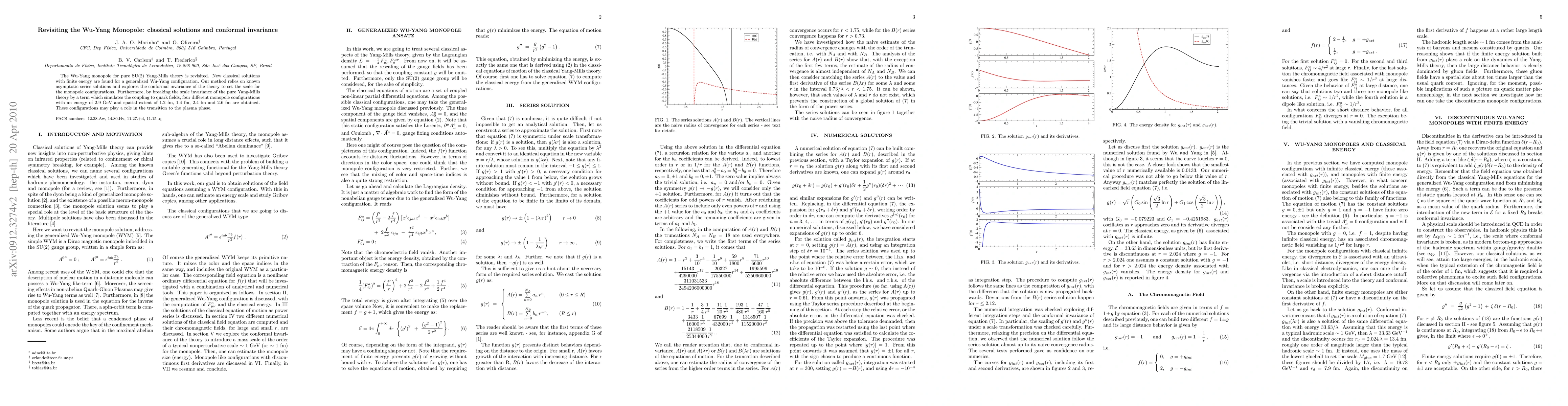 This paper revisits the Wu-Yang monopole in SU(2) Yang-Mills theory, discovering new classical solutions through conformal invariance and generalized configurations. Four distinct monopole configurations with varying energy and spatial extent are found, potentially relevant for the transition to plasma phase.