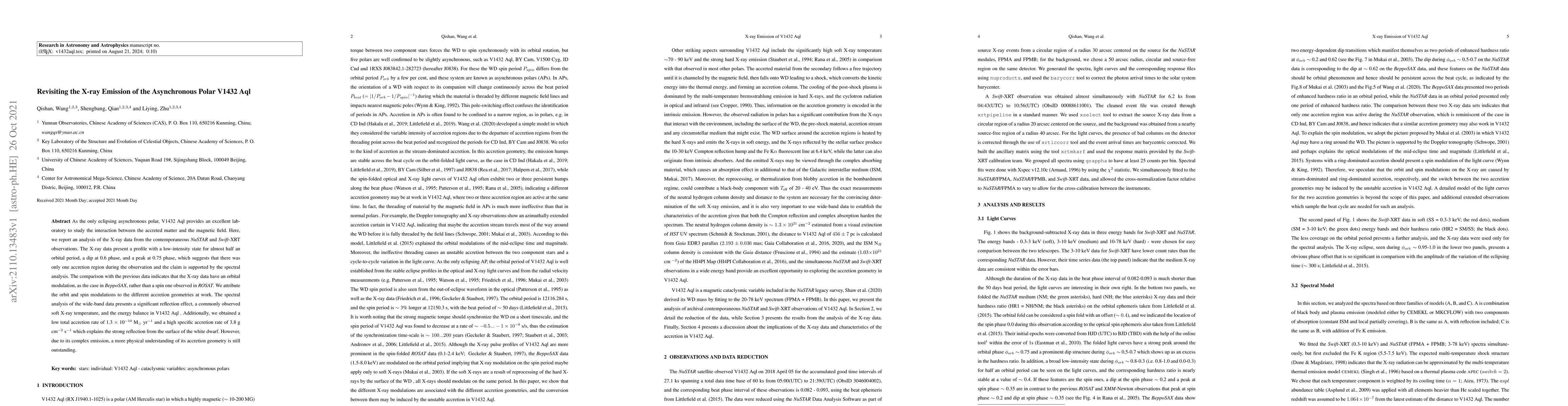 As the only eclipsing asynchronous polar, V1432 Aql provides an excellent laboratory to study the interaction between the accreted matter and the magnetic field. Here, we report an analysis of the X-ray data from the contemporaneous \nustar\ and \xrt\ observations. The X-ray data present a profile with a low-intensity state for almost half an orbital period, a dip at 0.6 phase, and a peak at 0.75 phase, which suggests that there was only one accretion region during the observation and the claim is supported by the spectral analysis. The comparison with the previous data indicates that the X-ray data have an orbital modulation, as the case in \sax, rather than a spin one observed in \rosat. We attribute the orbit and spin modulations to the different accretion geometries at work. The spectral analysis of the wide-band data presents a significant reflection effect, a commonly observed soft X-ray temperature, and the energy balance in V1432 Aql . Additionally, we obtained a low total accretion rate of 1.3 $\times$ 10$^{-10}$ M$_{\odot}$ yr$^{-1}$ and a high specific accretion rate of 3.8 g cm$^{-2}$ s$^{-1}$ which explains the strong reflection from the surface of the white dwarf. However, due to its complex emission, a more physical understanding of its accretion geometry is still outstanding.