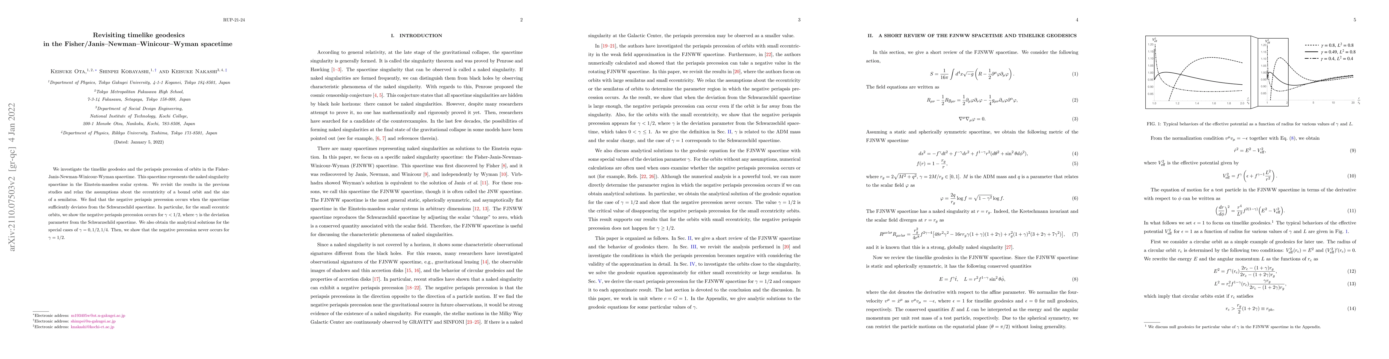 This paper revisits timelike geodesics in the Fisher-Janis-Newman-Winicour-Wyman spacetime, finding negative periapsis precession when the spacetime deviates from Schwarzschild. Analytical solutions for special cases reveal that negative precession occurs for $\gamma < 1/2$, but not for $\gamma = 1/2$.