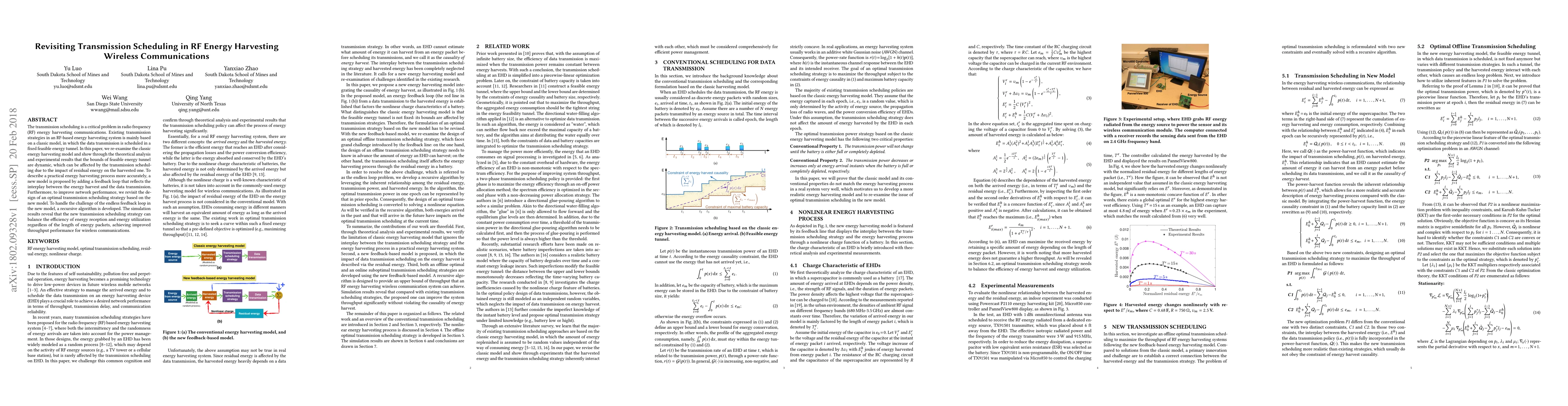 The transmission scheduling is a critical problem in radio frequency (RF) energy harvesting communications. Existing transmission strategies in an RF-based energy harvesting system is mainly based on a classic model, in which the data transmission is scheduled in a fixed feasible energy tunnel. In this paper, we re-examine the classic energy harvesting model and show through the theoretical analysis and experimental results that the bounds of feasible energy tunnel are dynamic, which can be affected by the transmission scheduling due to the impact of residual energy on the harvested one. To describe a practical energy harvesting process more accurately, a new model is proposed by adding a feedback loop that reflects the interplay between the energy harvest and the data transmission. Furthermore, to improve network performance, we revisit the design of an optimal transmission scheduling strategy based on the new model. To handle the challenge of the endless feedback loop in the new model, a recursive algorithm is developed. The simulation results reveal that the new transmission scheduling strategy can balance the efficiency of energy reception and energy utilization regardless of the length of energy packets, achieving improved throughput performance for wireless communications.